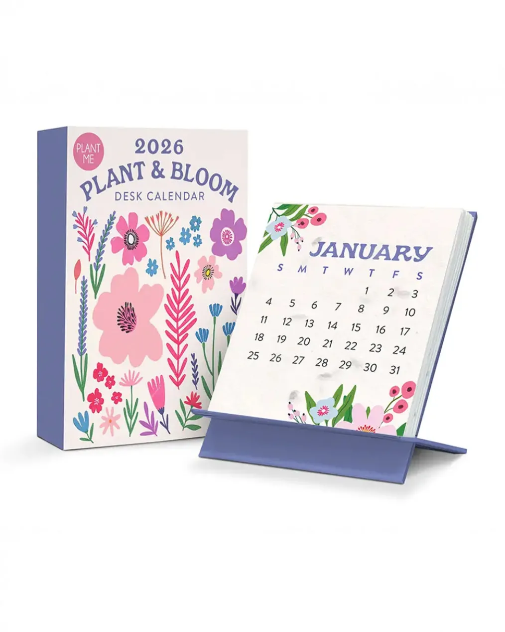 The Botanical Bliss Plant and Bloom 2026 Desk Calendar is a unique and eco-friendly way to organize your year. Each month features beautifully illustrated floral artwork on seed paper, allowing you to plant the pages after use and enjoy real blooms. This innovative desk calendar is not only a practical date keeper but also a delightful piece of office decor, complete with an easel for easy display.