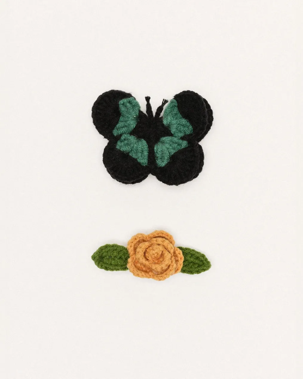 Hansel From Basel’s crochet hair accessory family is growing! Decorate your mane with a duo of dimensional fluttering butterflies thanks to this adorable two-pack of clips. Love a garden variety! Mix and match with other sets to create your perfect combo.
