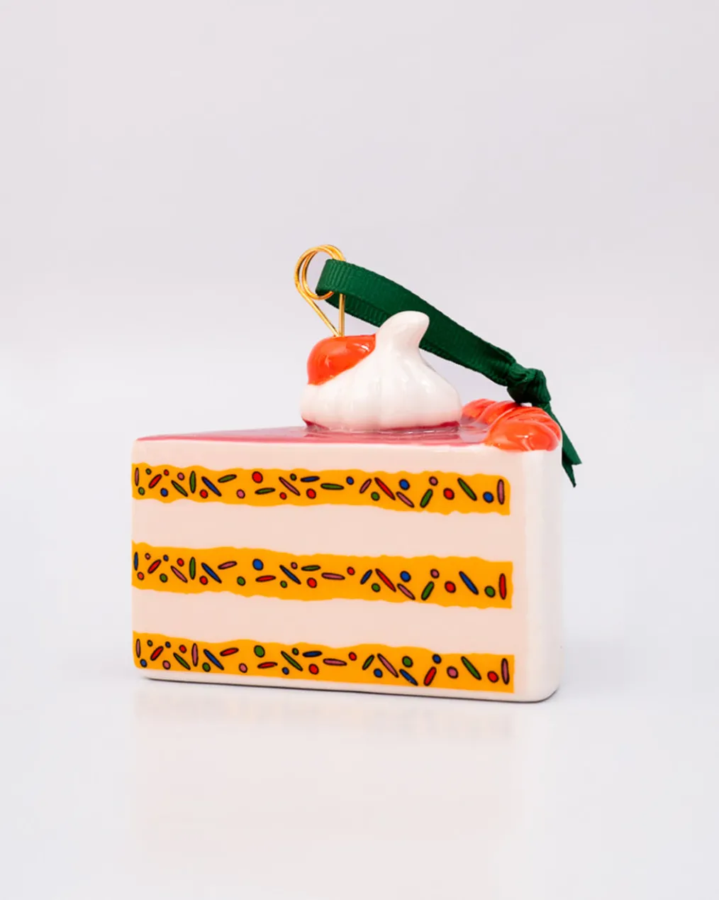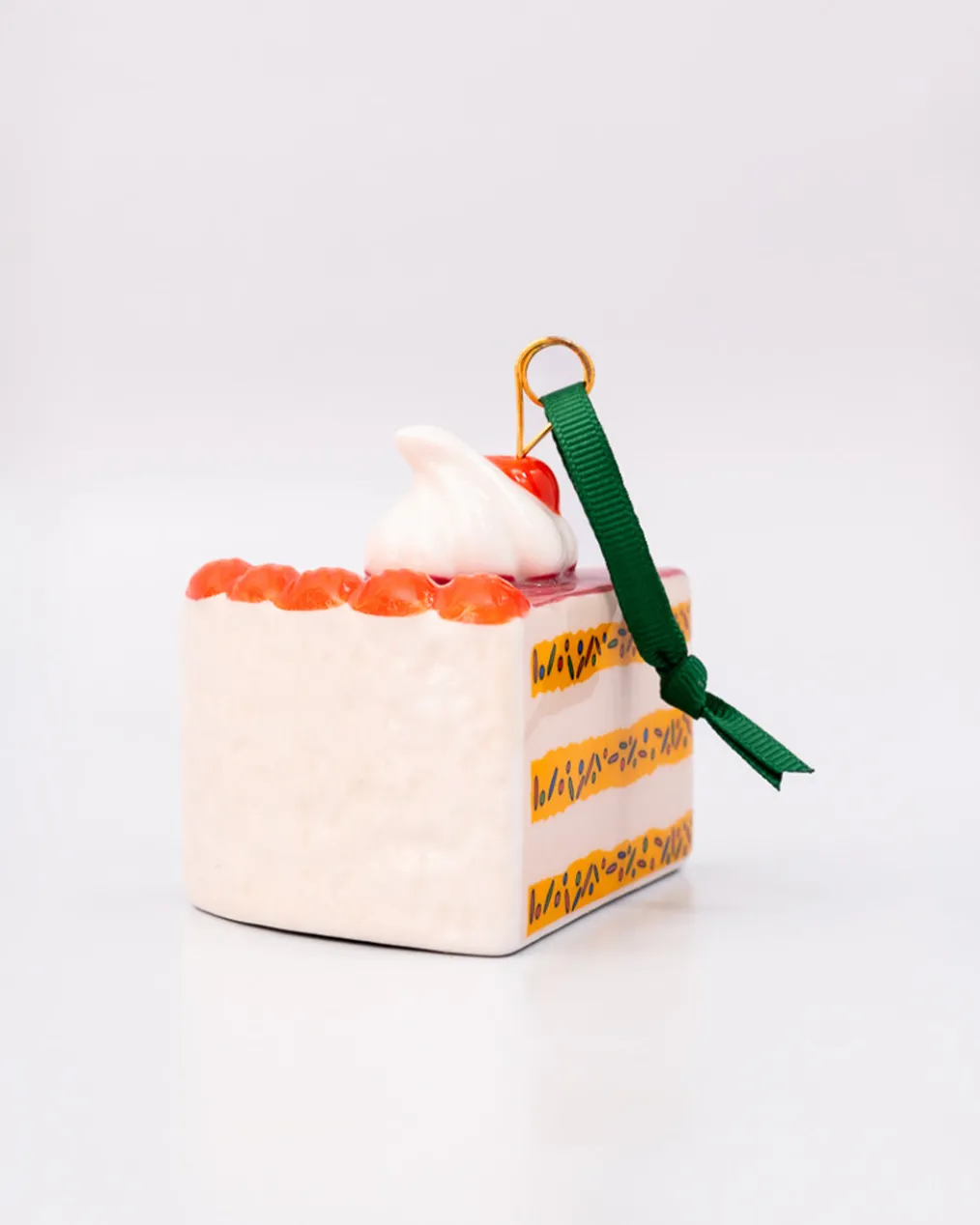 Create a cute ornament? Ah, piece of cake! This is made of ceramic and is the perfect accent for just about any tree or space that needs a little something sweet.