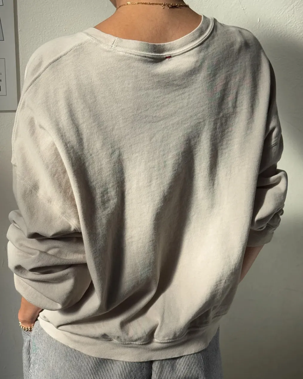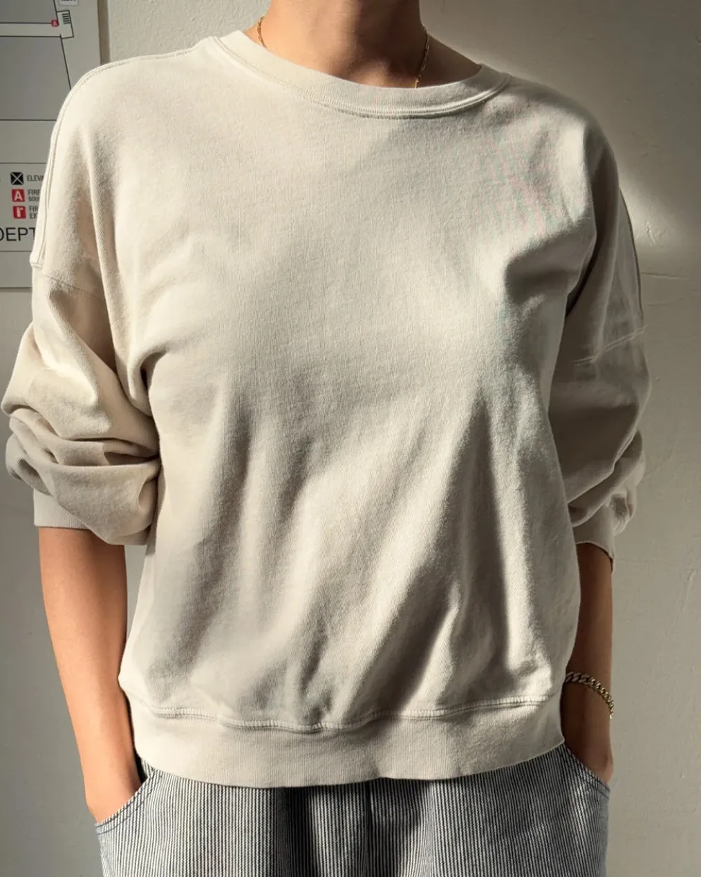 The Cali Jersey Sweatshirt blends the best of The Little Boy Tee and the Poche Top for a playful take on the classic crewneck. Crafted from 100% premium cotton jersey, it offers the lightweight feel of the Little Boy Tee, making it ideal for layering under jackets. It also borrows signature details from the Poche Top, like a ribbed crew neckline and relaxed balloon sleeves. Designed with a slightly oversized fit, it features a perfectly cropped length, creating the perfect balance of style and comfort.