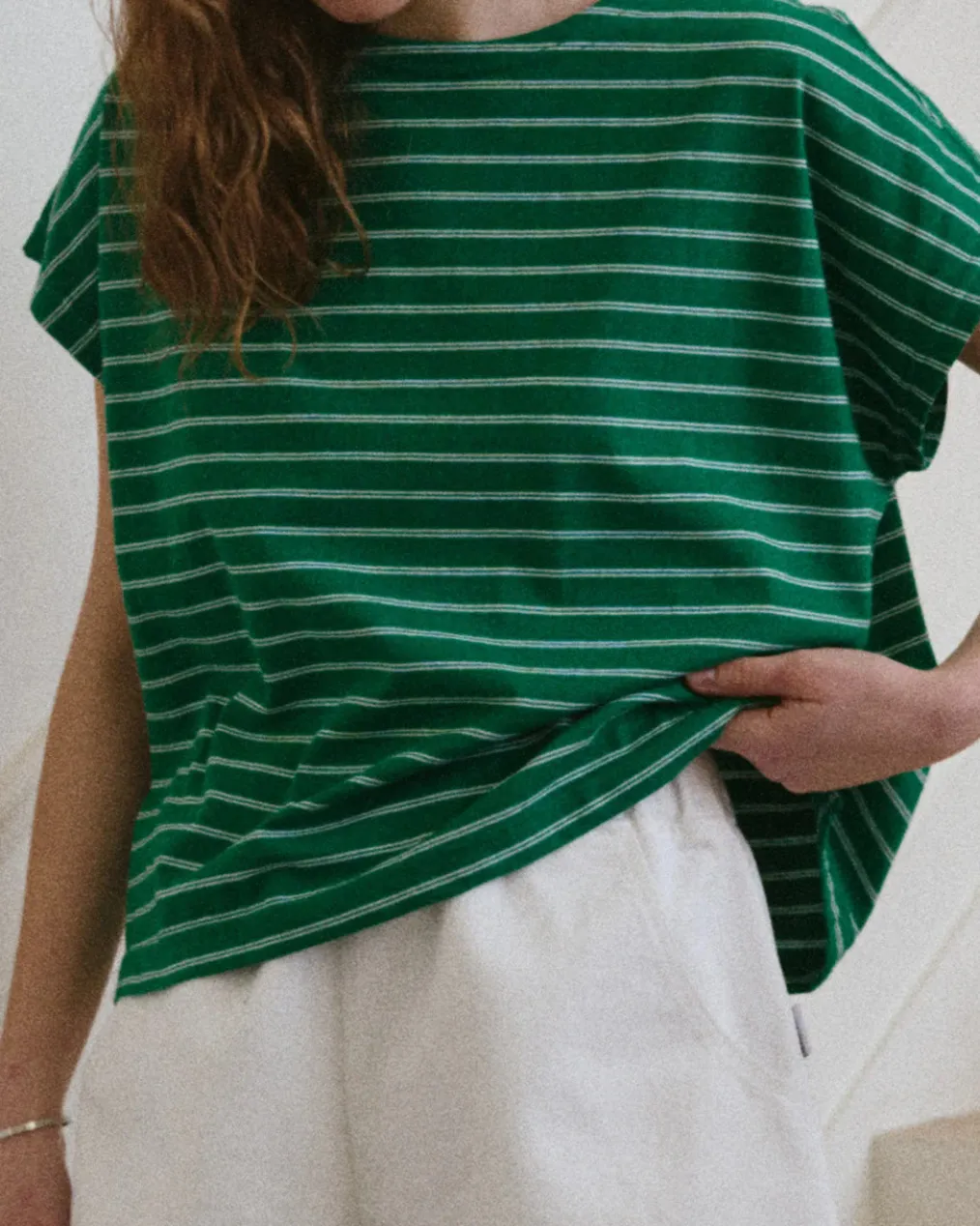 Drawing inspiration from the Jeanne Tee, this top features signature dolman cap sleeves and a refined boxy fit. The length offers ideal coverage—not too cropped, yet not too long. A wider round neckline lends an effortless touch, while the mid-weight cotton feels soft and maintains its structure. The perfect balance of comfort and style, designed for everyday ease.