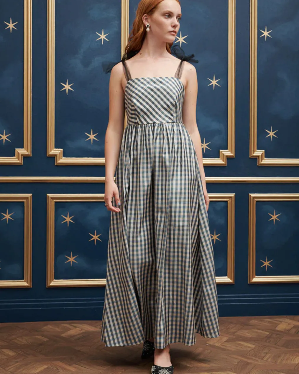 Check this out! The Cindy Check Midi Dress is a delightful dance of style and sophistication. Crafted from a chic woven check fabric, the double adjustable shoulder ties in soft tulle add a whimsical touch, making this dress perfect for playful layering. Embrace print and pattern with this enchanting midi that effortlessly elevates your wardrobe!