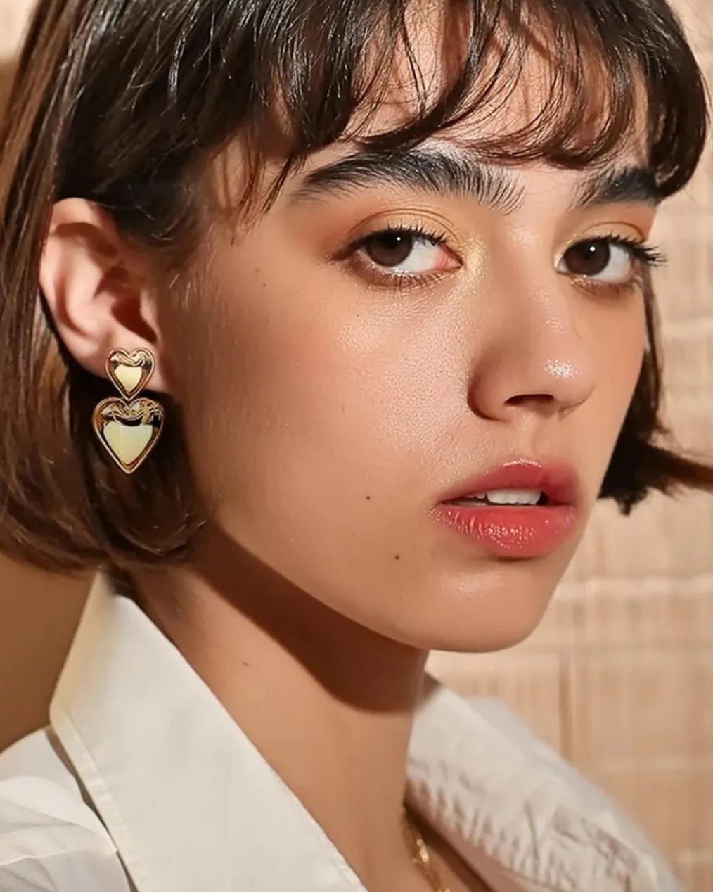 Capture hearts with these playful Dangle earrings! At 30 MM long, they’re the perfect length for any occasion. Made with a mix of 18K gold Stainless Steel, these earrings are both stylish and durable.