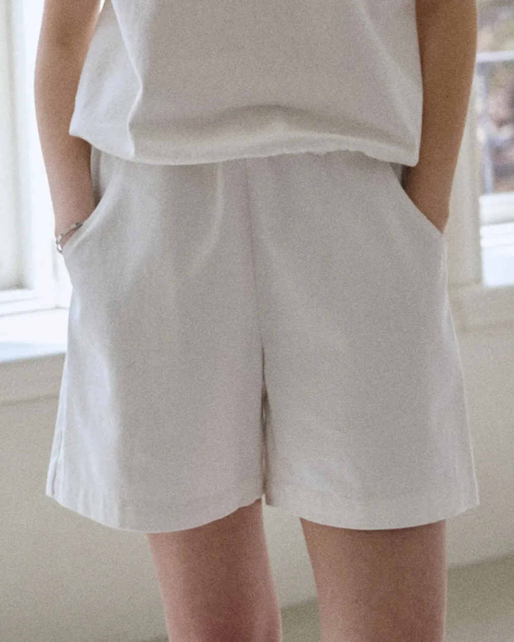 A versatile take on classic denim shorts, the City Shorts draw inspiration from the Arc Pants, featuring subtly flared panels for optimalcomfort and shape. With a high-waisted design, elasticated band, and convenient side pockets, they are a perfect wardrobe staple. Dress them up or down, and pair them with your favorite socks for a stylish touch.