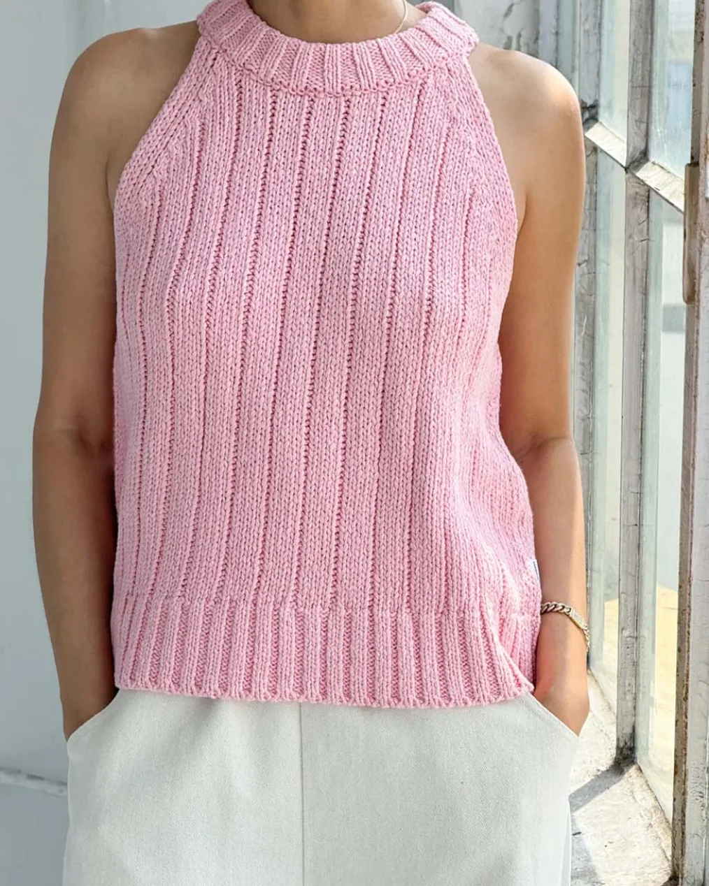 Say hello to the Claire Tank, a refreshing take on the halter top. It follows a modern silhouette that draws inspiration from the classic halter straps we all know and love. Made of cotton, it features thick ribbed details throughout and maintains the perfect length to pair with your favorite bottoms.