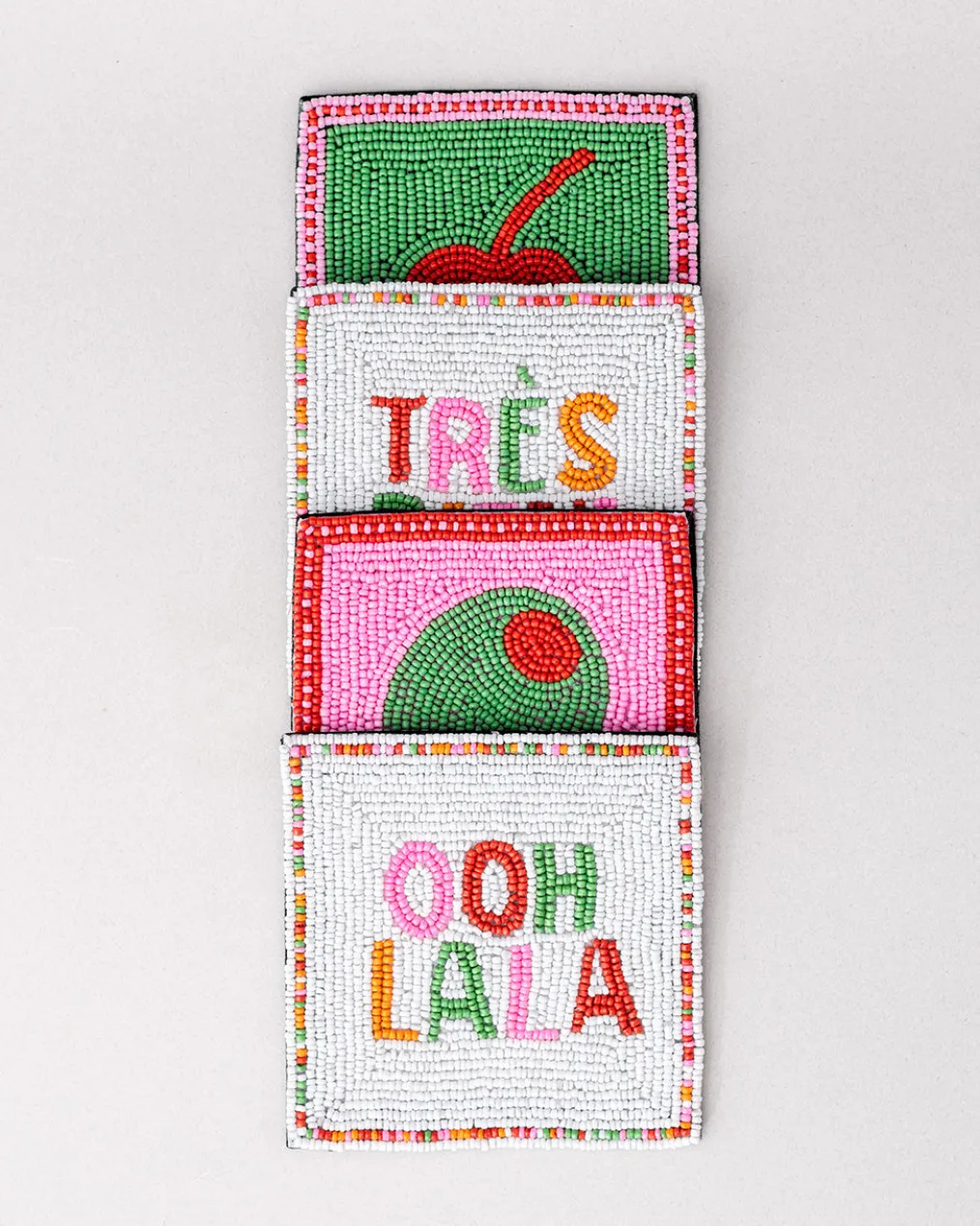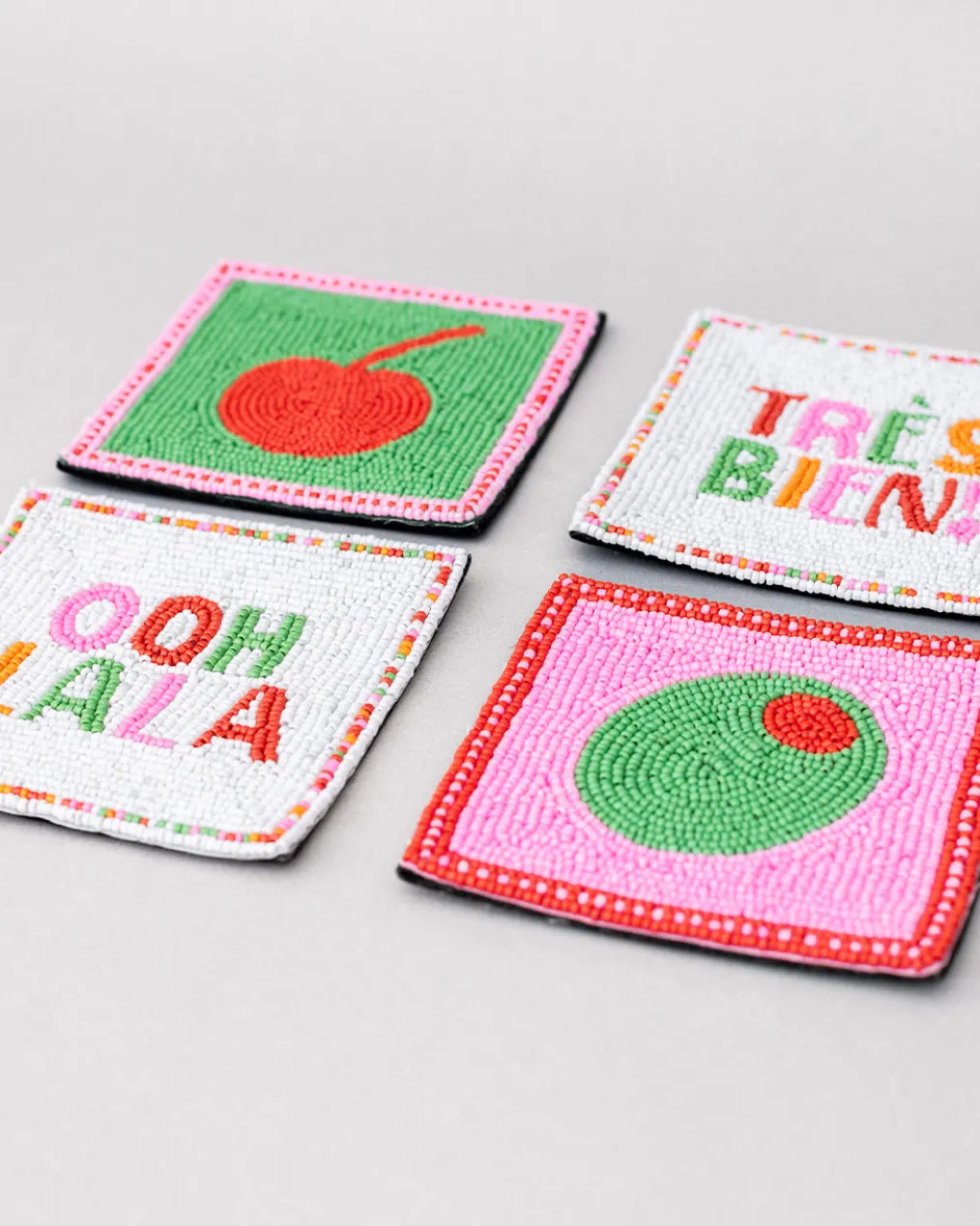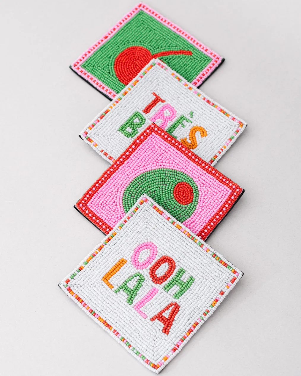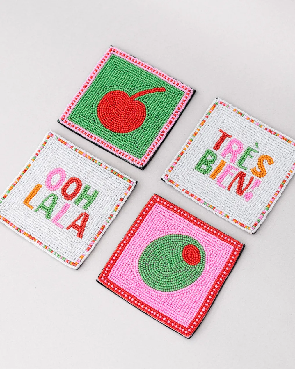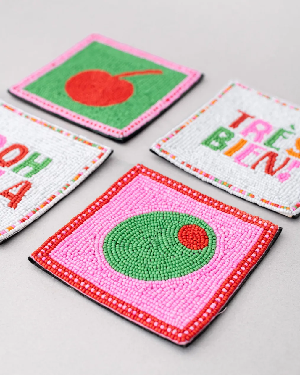 Is there anything more glamorous than setting your drink atop a beaded coaster? Made with seed beads, these come in a set of four and each one has a unique design.