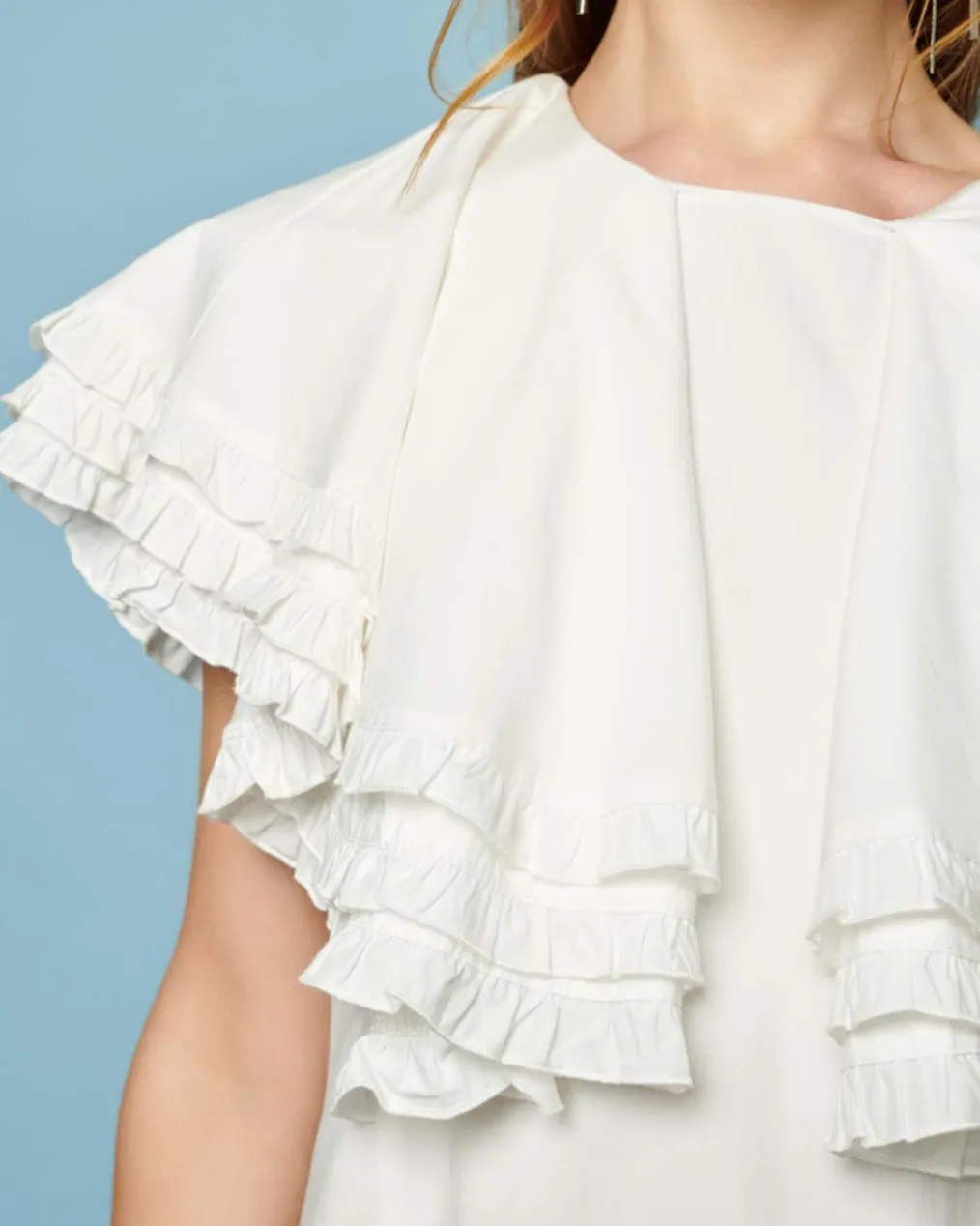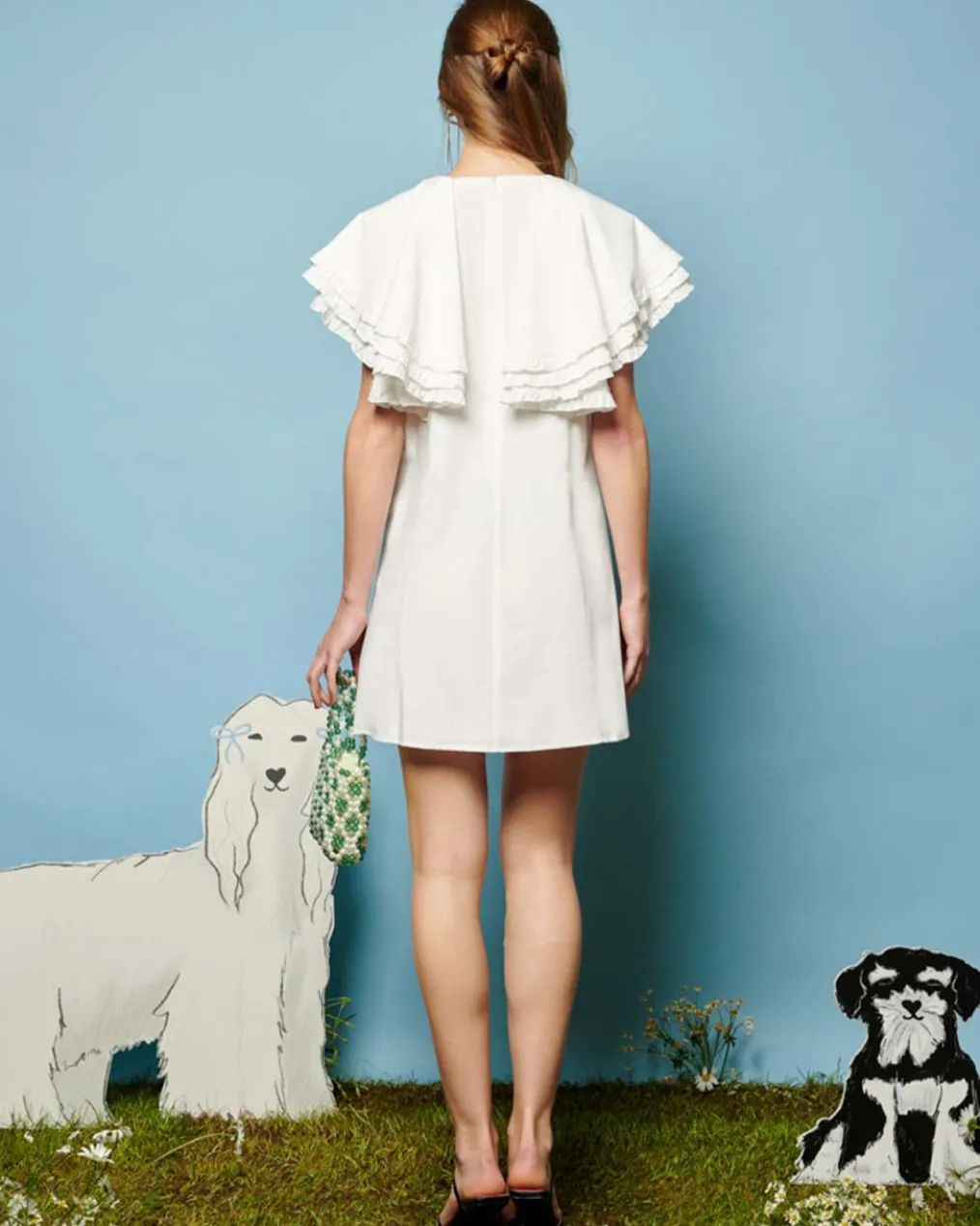 Indulge in playful sophistication with the Collie Lace Trim Mini Dress, a loose-fit wonder in soft woven fabric. Imagine yourself at a sunny park play date, the layered sleeves and delicate lace edge trim adding a touch of elegance to your summer ensemble. With its layered front creating an intriguing silhouette, this mini dress captures the essence of carefree elegance.