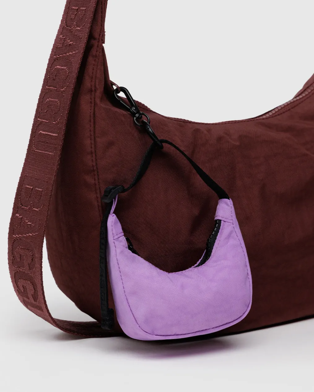 Baggu’s Crescent Bag charm decorates your larger bag while keeping small items like credit cards or lip balm close at hand.
