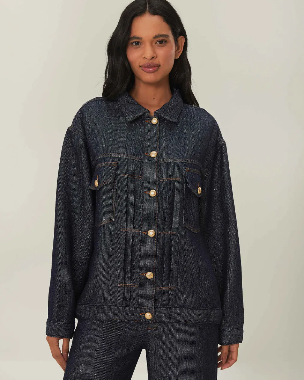 Wrap yourself in the unique charm of the FARM Rio Denim Shine Jacket, where classic denim meets whimsical elegance. This jacket features intricate embroidery that adds a touch of artisanal flair, contrasting beautifully with the deep blue denim fabric. Pockets with detailed stitching and round, nature-inspired buttons lend an enchanting twist to the relaxed silhouette. Made with responsibly-sourced materials, this is a piece that feels as good on the soul as it does on the body.