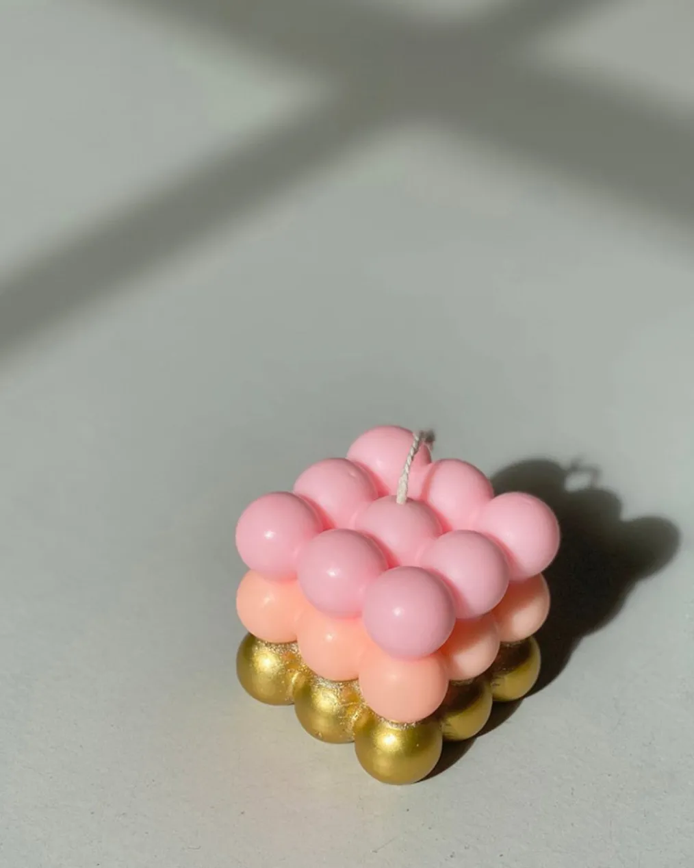 Can’t go wrong with a dip-dyed bubble candle. It’s from Pink Stories, and it’s handmade in Germany from rapeseed wax.