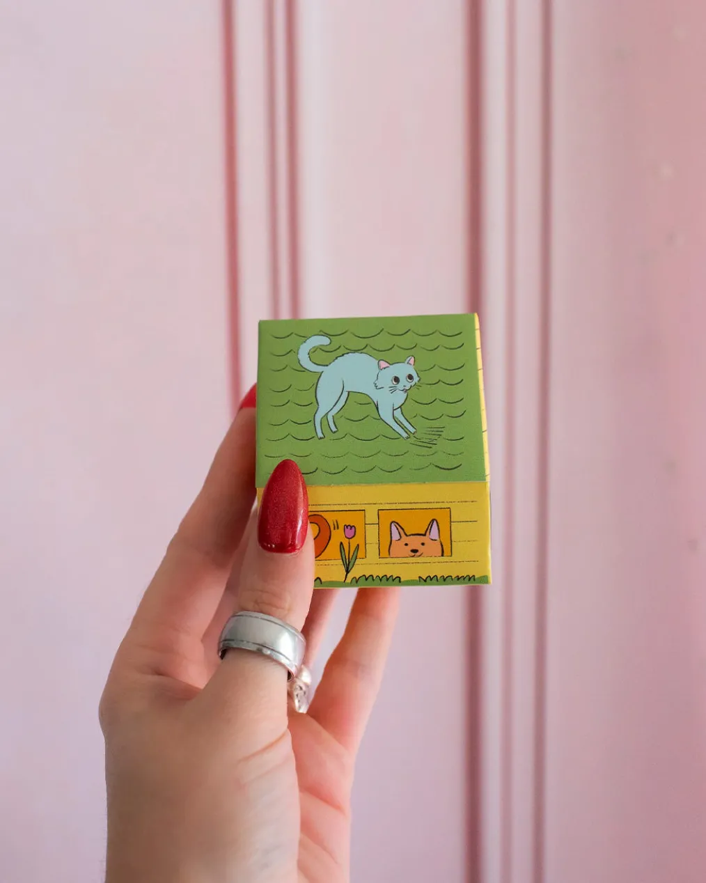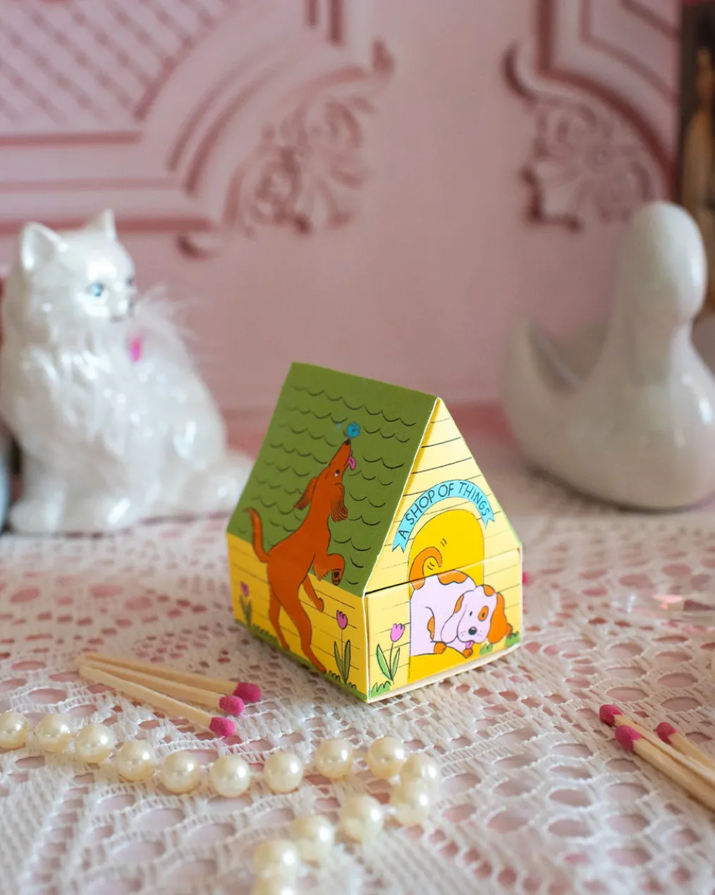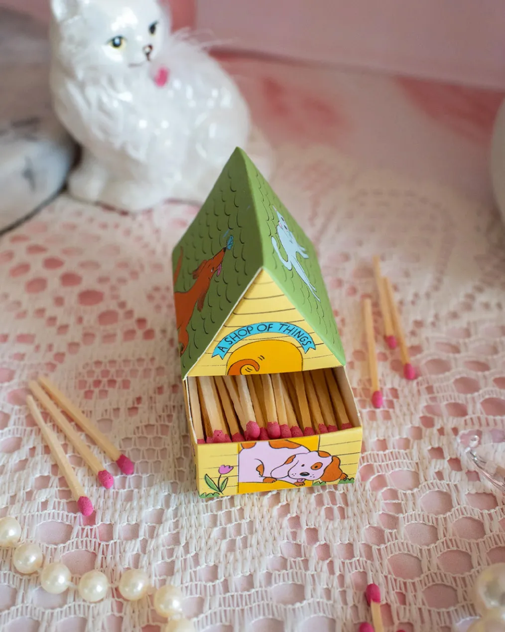 If you’re gonna be in the doghouse, we hope it’s at least a really cute one like this! These matches are in a box shaped like an adorable little doghouse and features the cutest tiny furry friends all over. The amazing art for these was done by Claire Shadomy.