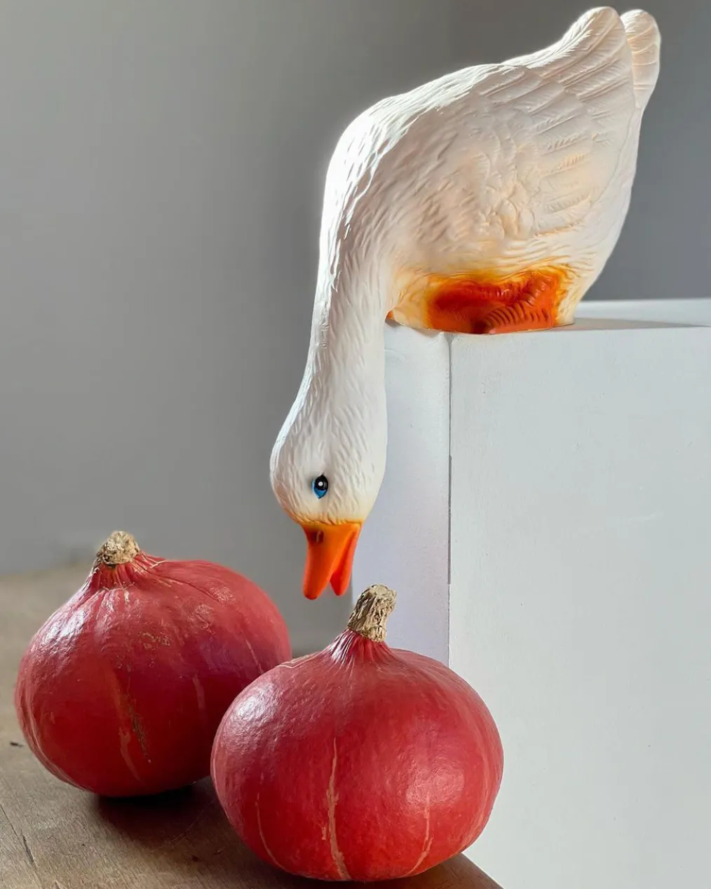 With the night light Duck looking down, a whole dream world opens up! The nightlight gives a very soft and veiled light and will help the little ones to fall asleep without fuss. Lighted or not, the Duck is always a nice decorative object. Traditionally made. For the safety of the kids, supplied with LED system of 1.5W.