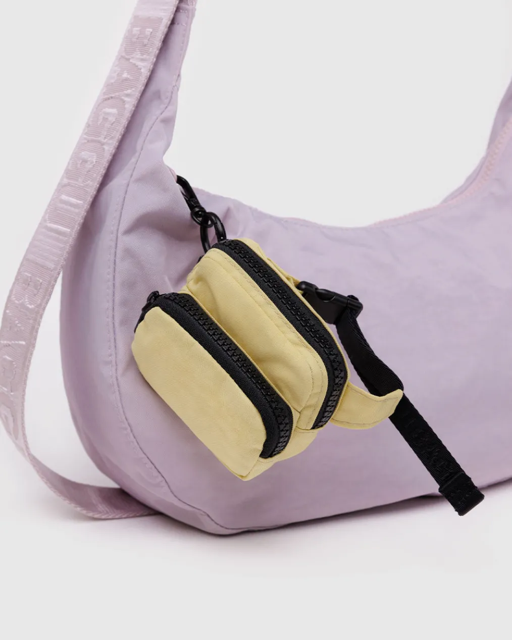 Baggu’s Fanny Pack charm decorates your larger bag while keeping small items like credit cards or lip balm close at hand.