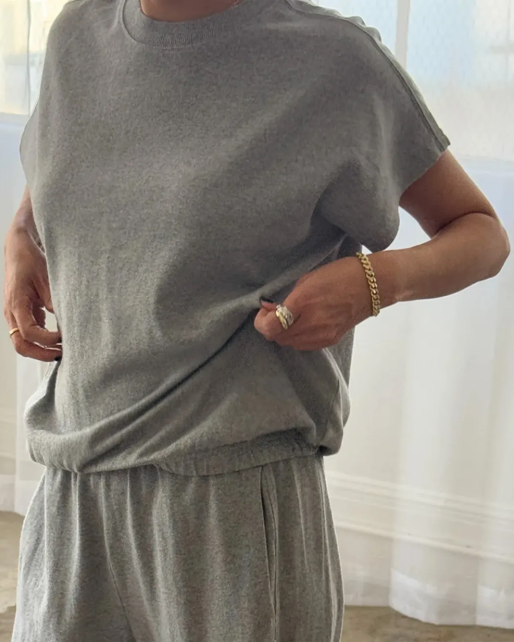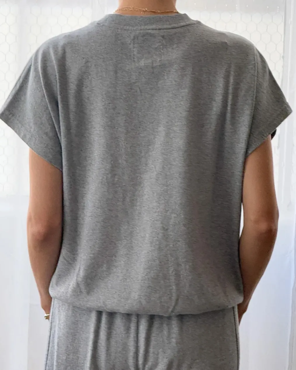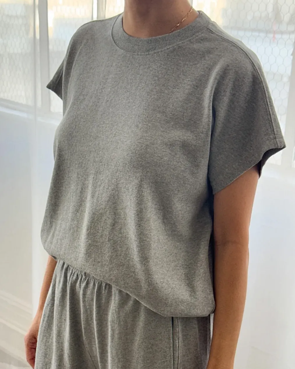 A refined twist on a classic silhouette, the Fei Tee takes design cues from the Jeanne Tee, such as its boxy frame and cap sleeves. It also adopts newer elements from the Daisy Long Sleeve Top like an elasticated hem. This feature offers a fun alternative to tucking in the tee, creating effortless volume — perfect for pairing with high-waisted bottoms.