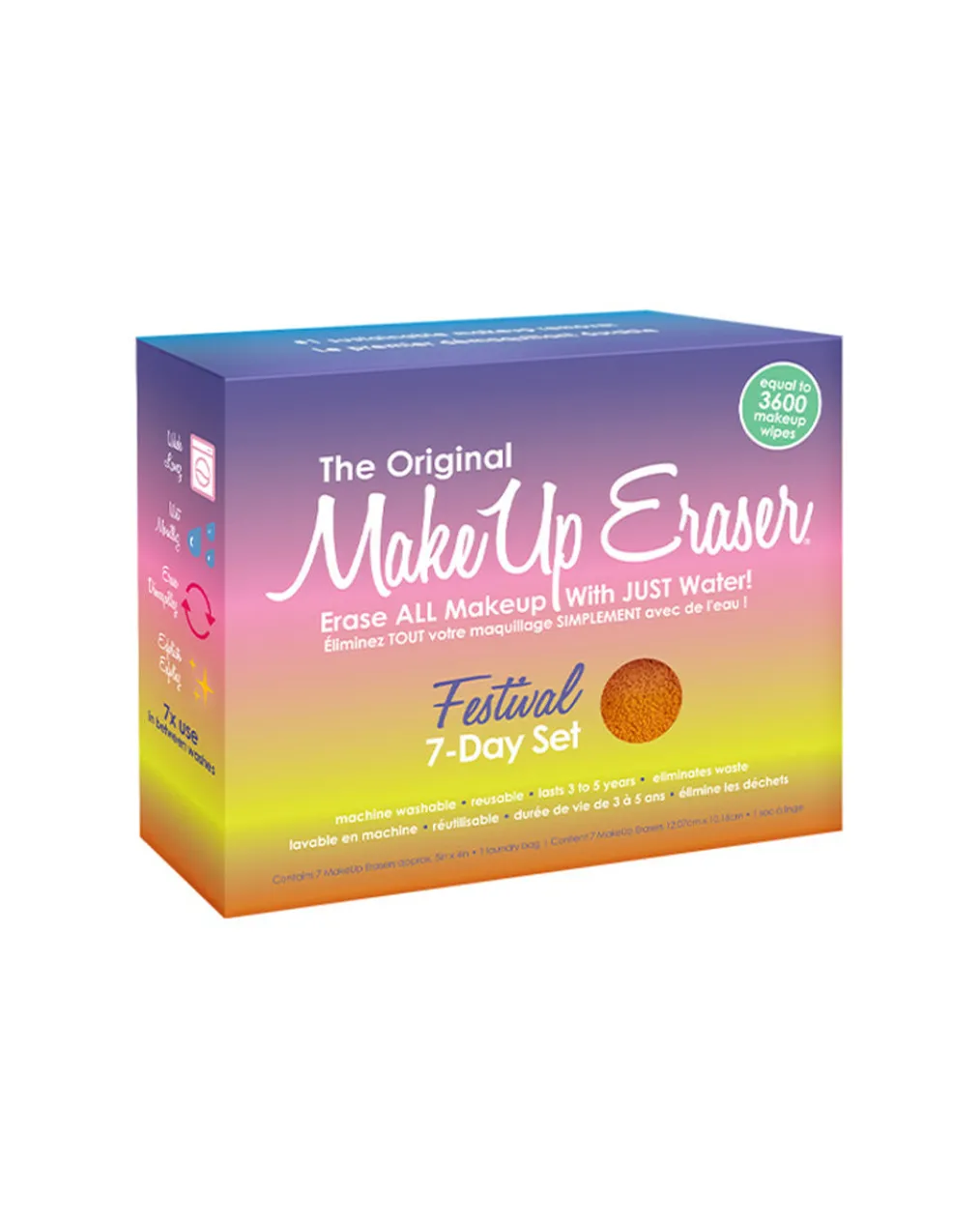 - Includes: 7 daily MakeUp Erasers & a laundry bag. Each daily MakeUp Eraser measures approx. 5 in. x 4 in.