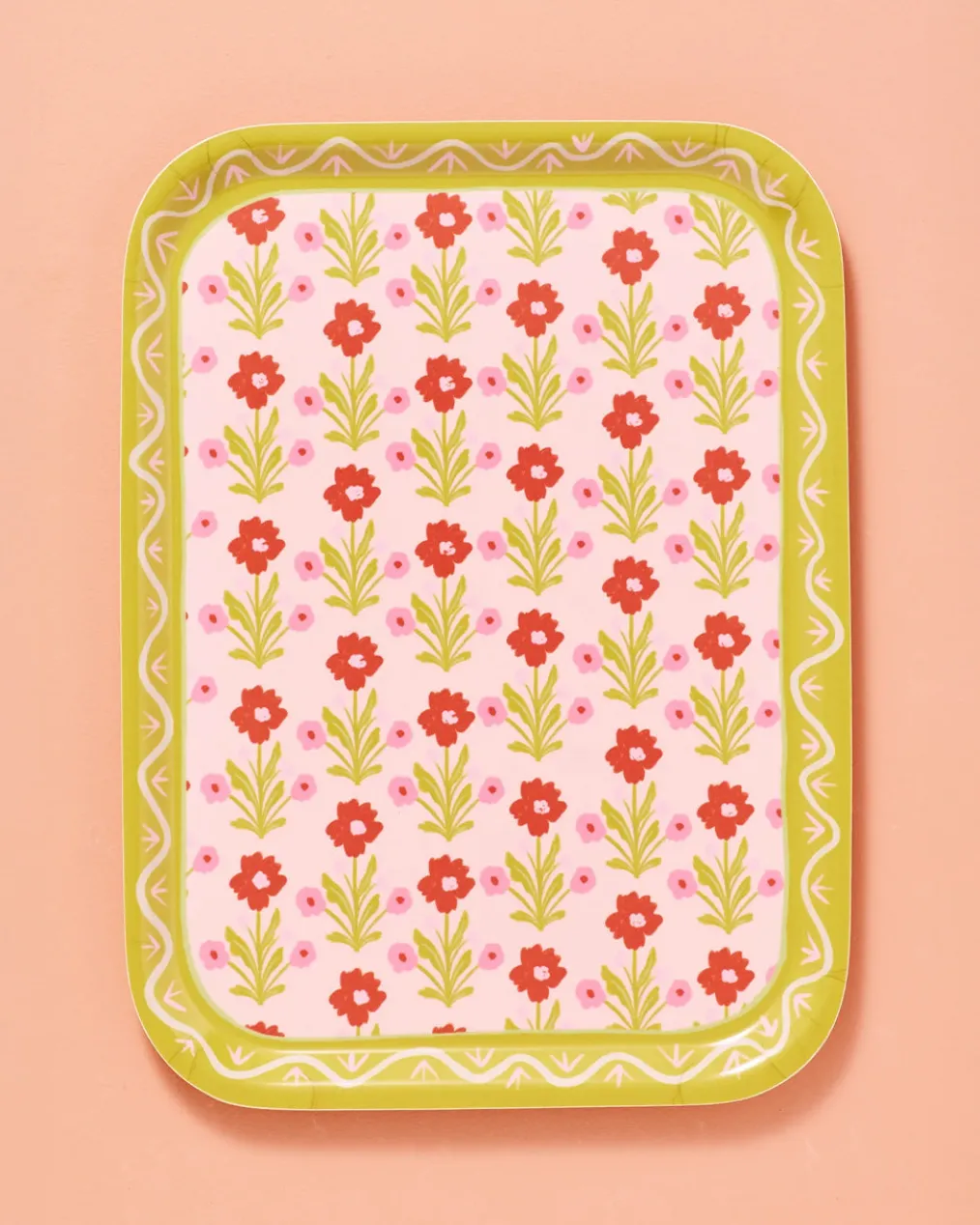 - Crafted from sheets of sustainably sourced birch veneer, and topped with a custom printed melamine layer, this unique tray is sure to catch your eye.