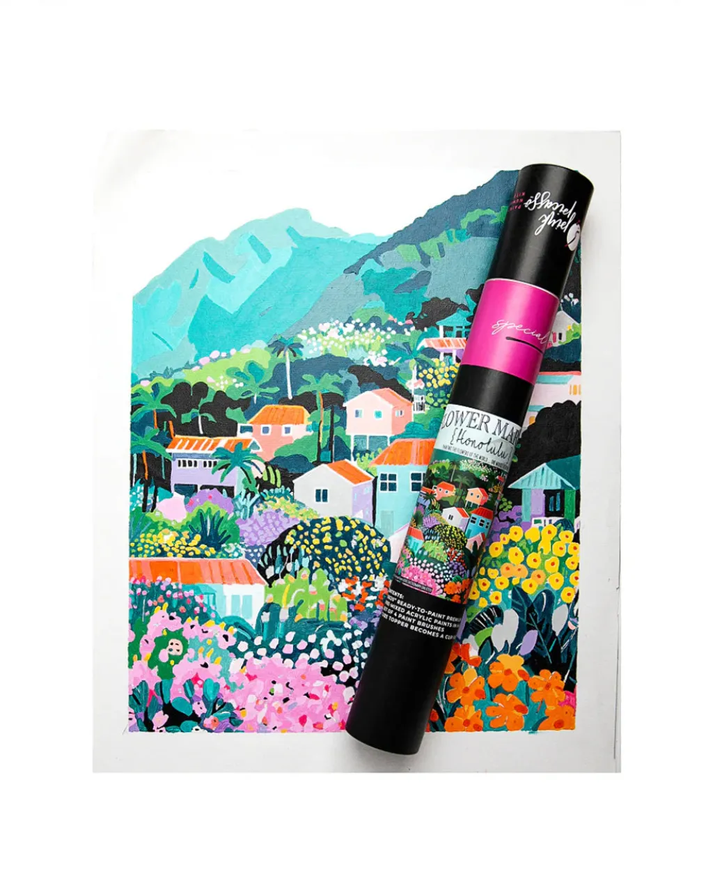 Say aloha to your next creative escape. Flower Market: Honolulu transports you to a vibrant hillside in Hawaii, where tropical blooms and colorful rooftops cascade down lush, jungle-covered slopes. It’s whimsical, bold, and joyfully modern — part of the brand-new Flower Market Collection.