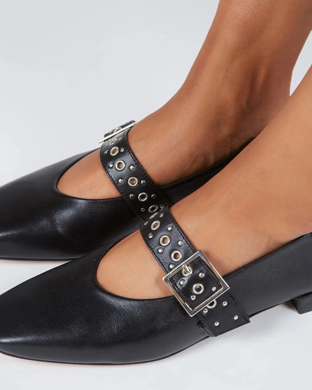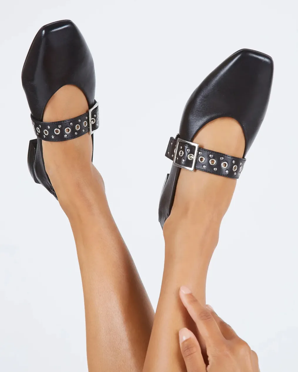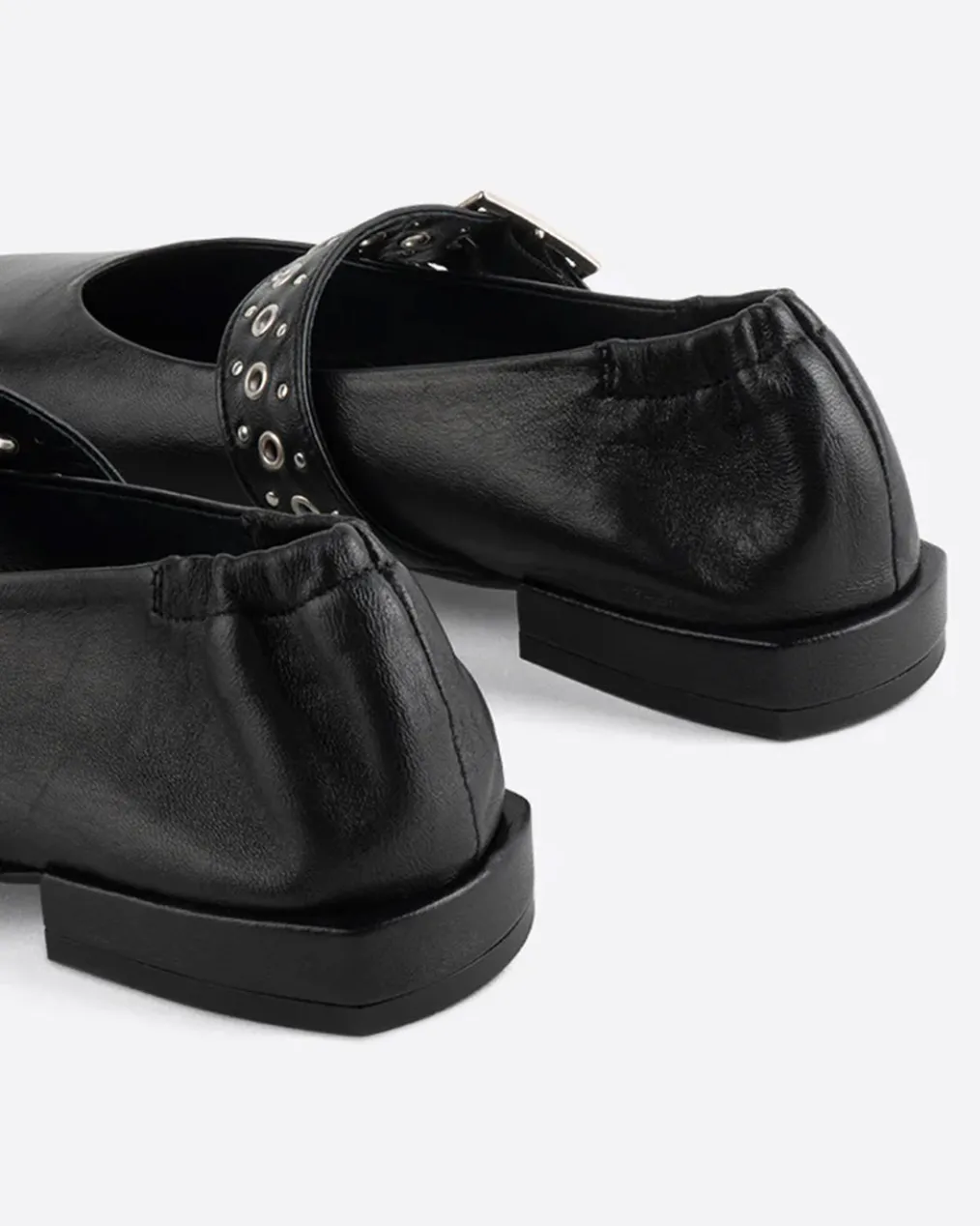 Intentionally Blank is wild about this new update to their best-selling PEARL! The FORUM Mary Jane was created in Spain out of leather from a LWG (Leather Working Group) certified supplier. This square toe ballet flat has an adjustable studded strap and elasticized heel making it elevated for styling, but comfortable and easy to break in.