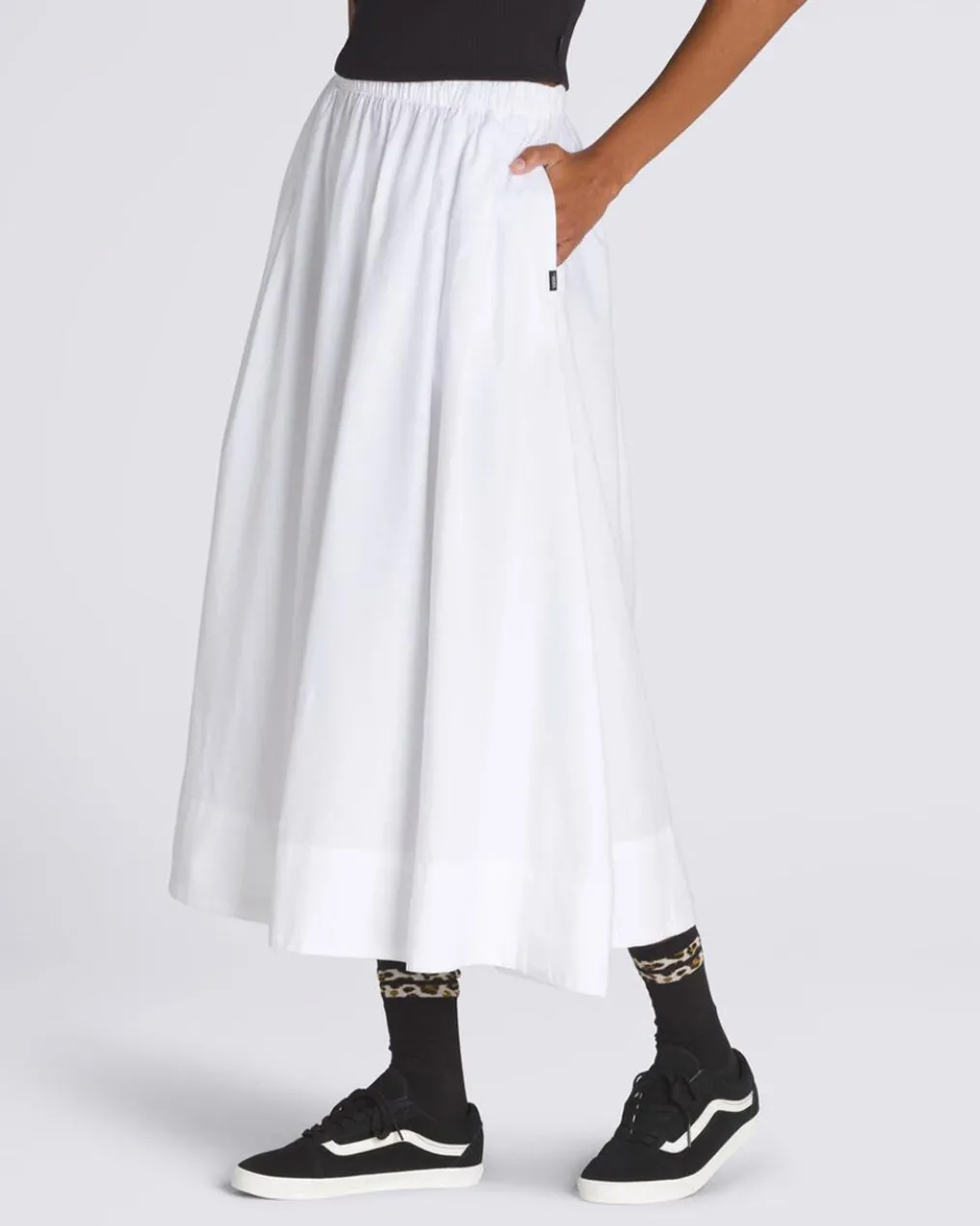 The Francesca Full Skirt is as at home at a springtime party as it is on the streets. Made of woven cotton poplin, it features an elastic waistband and side slits for comfort and movability.