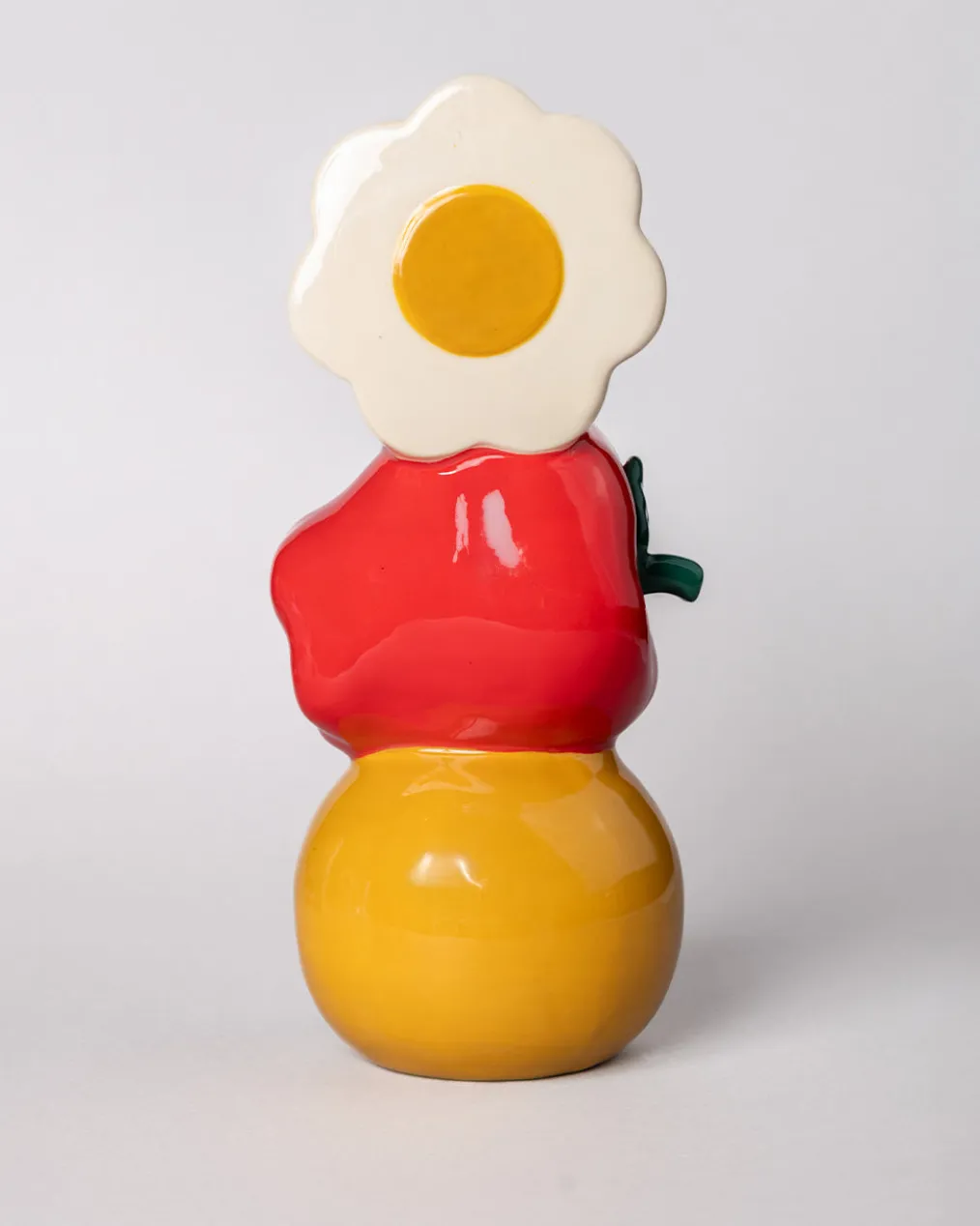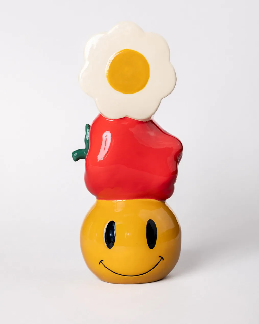 We’re not sure why, but a daisy, apple, and smiley face just make sense together. This is a ceramic vase that will look so good on your kitchen table, book shelf, or desk.