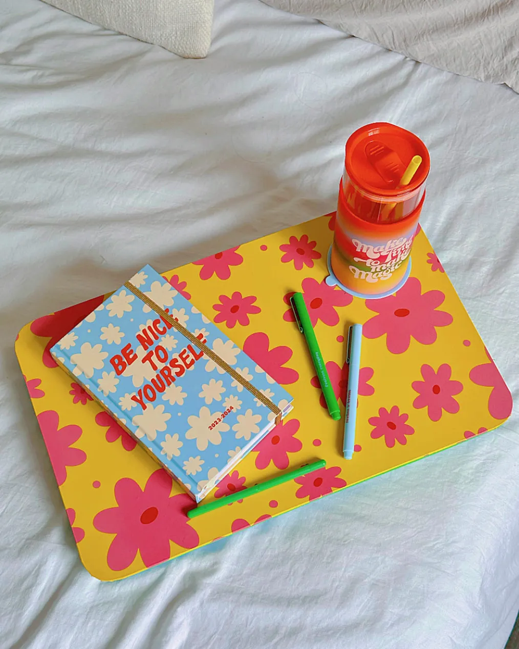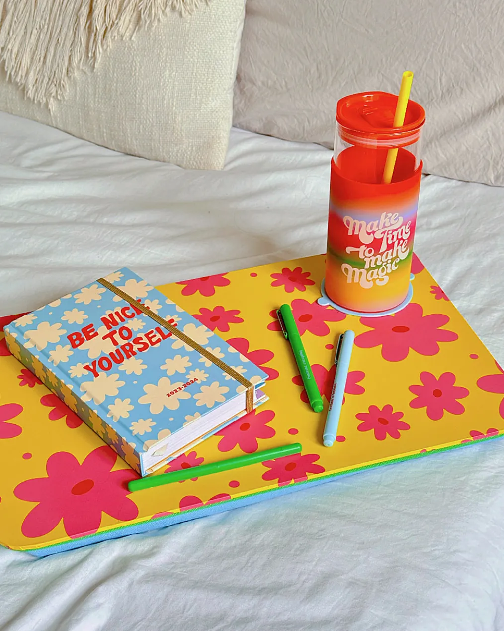 Because sometimes working from home becomes working from bed. This bright lap desk comes with a cushy bottom and a cup holder.