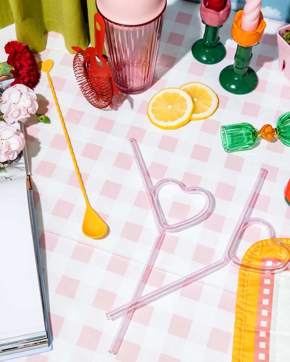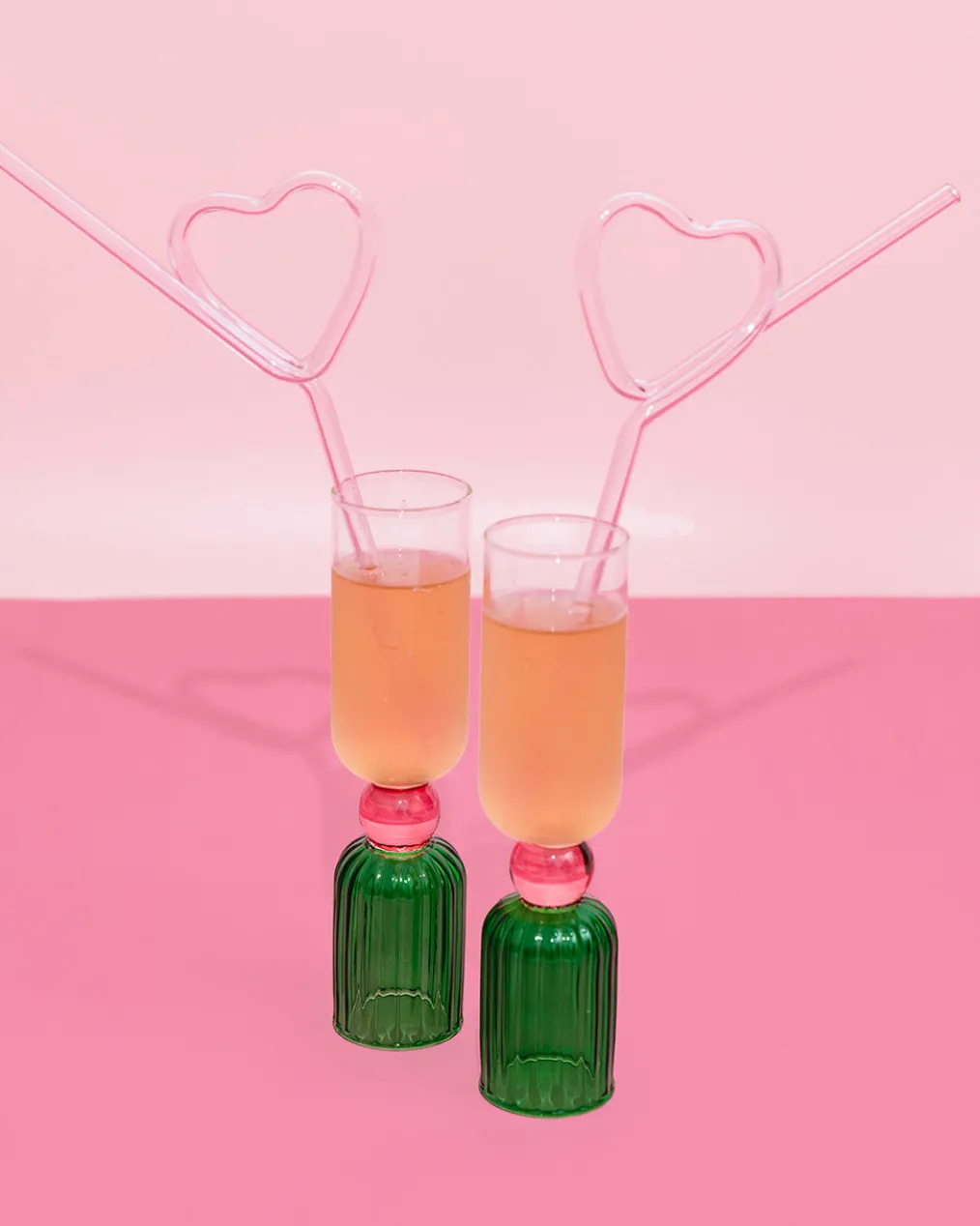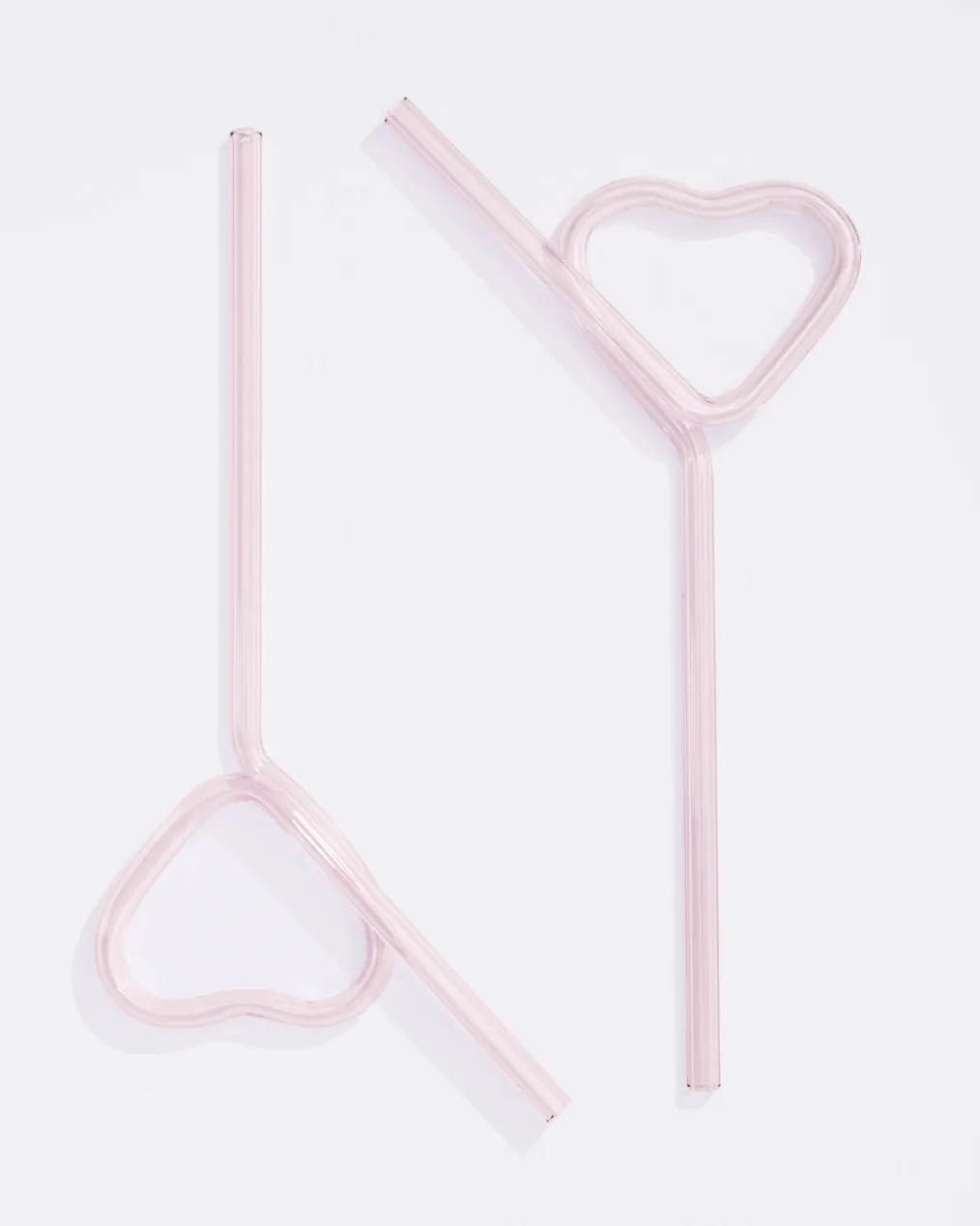 For you and yours. Or your favorite twins. Or your two most polite party guests. This set of 2 heart-shaped glass straws are the perfect little extra for your next gathering.