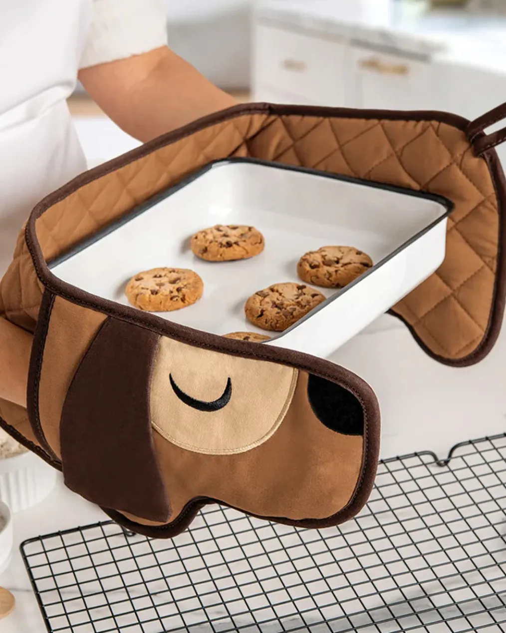 With your best friend in hand,A furry pup, at your command.With paws that grip, and ears so neat,You’ll cook with ease, with this canine treat!