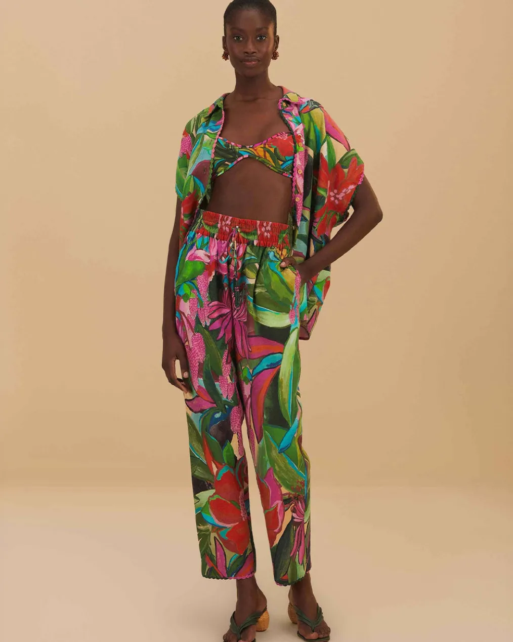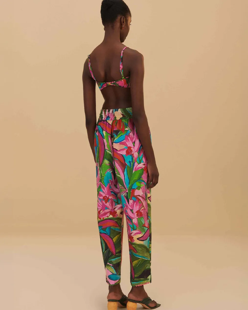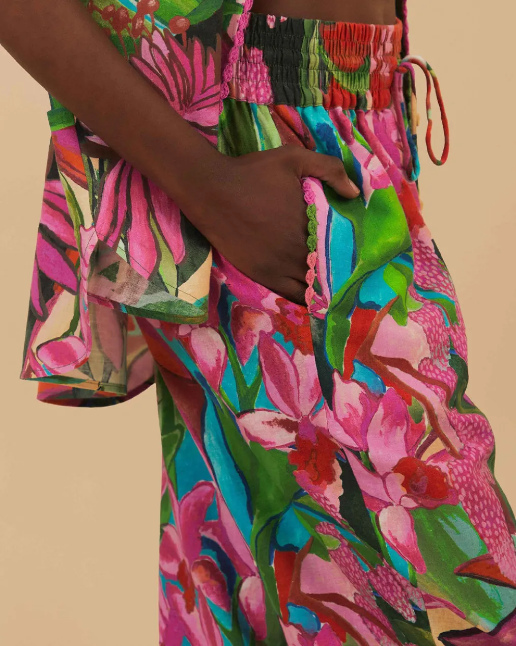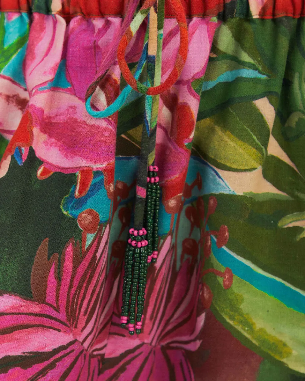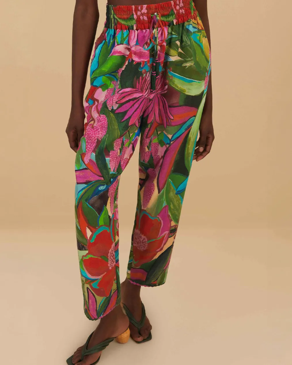 Embrace the vibrancy of nature with the Jardin De Reve Pants, enveloping you in a lush rainbow of botanical prints. This piece features an easy, flowing silhouette, adorned with an enchanting floral pattern that blooms with pinks, greens, and pops of vivid colors. Subtle beaded drawstrings add a hint of enchantment, enhancing the luxurious feel. A captivating staple, these pants promise to be the centerpiece of any ensemble, whisking you away to a dreamy garden escape.