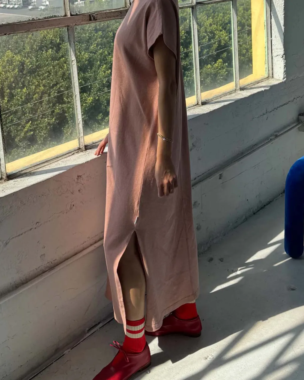 She is a hybrid of Le Bon Shoppe’s bestseller Her Dress and Jeanne Tee. Slightly oversized muscle tee dress with a fun high side slit, she will have you living in style and ease all summer long. Take her with you on all your fun getaways, long weekends exploring new places and lounging days at the beach