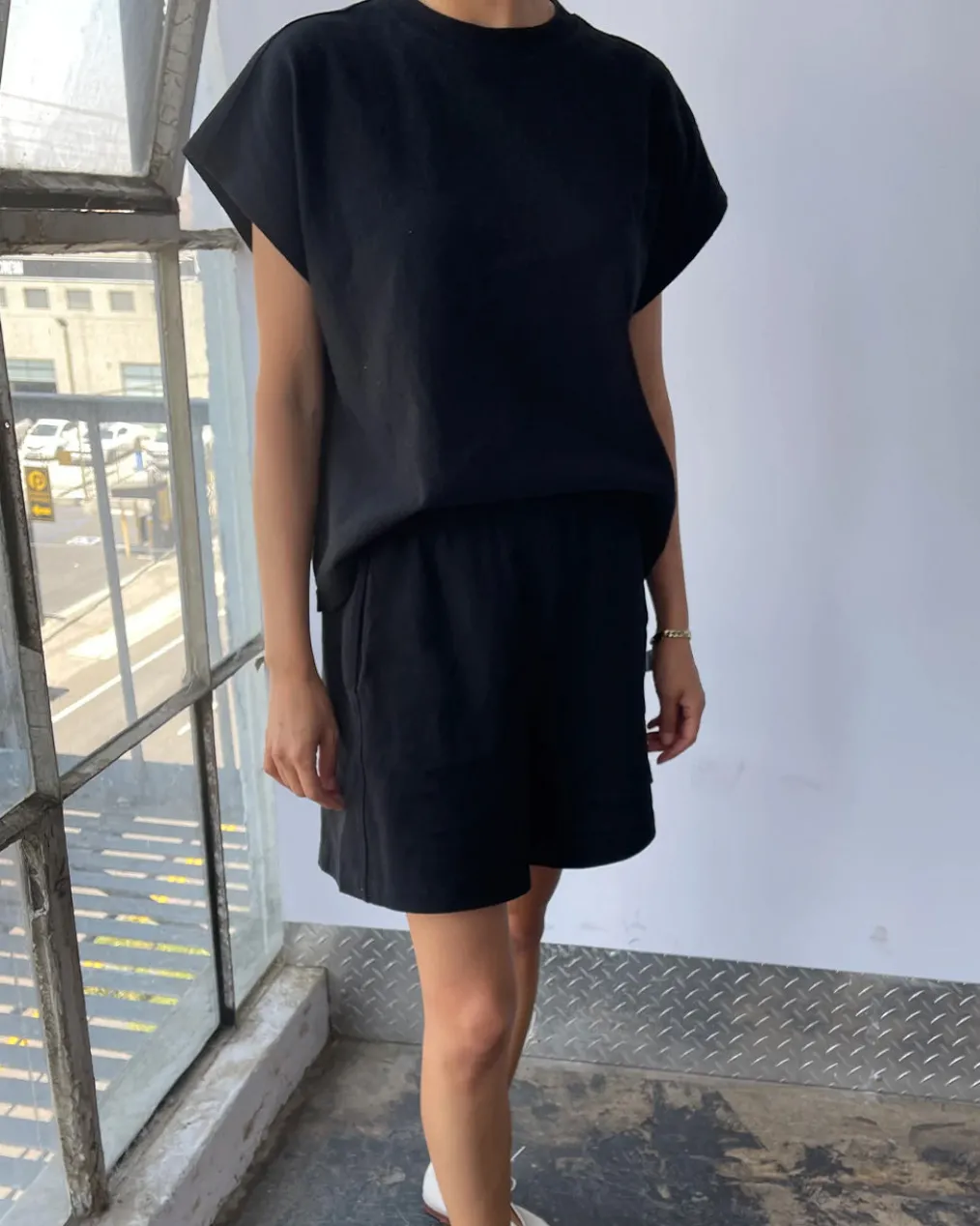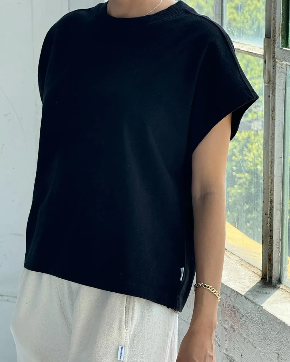 Jeanne Tee is Le Bon Shoppe’s perfect muscle tee. She features a shorter length to pair perfectly with high waisted bottoms but still give enough coverage for mid-rise bottoms and just the right amount of off shoulder dolman sleeve. She has a high crew neck with an extra wide neckband that adds to her signature charm.