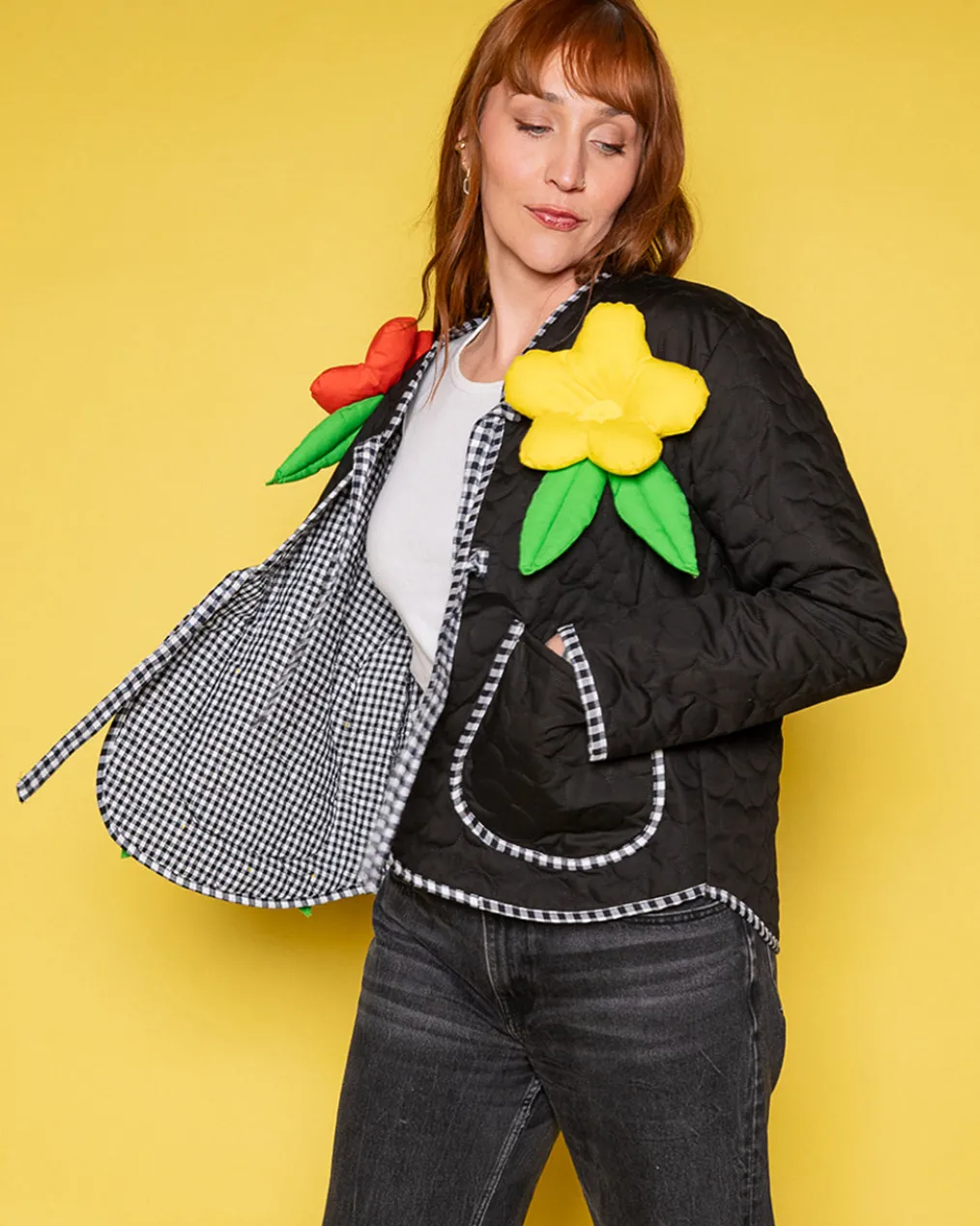 The Joey jacket is your perfect fall companion! Made of 100% cotton, its quilted with the cutest floral motif and adorned with 3D puffy flowers. Lined with gingham for some extra flair, the Joey jacket is your new go to!