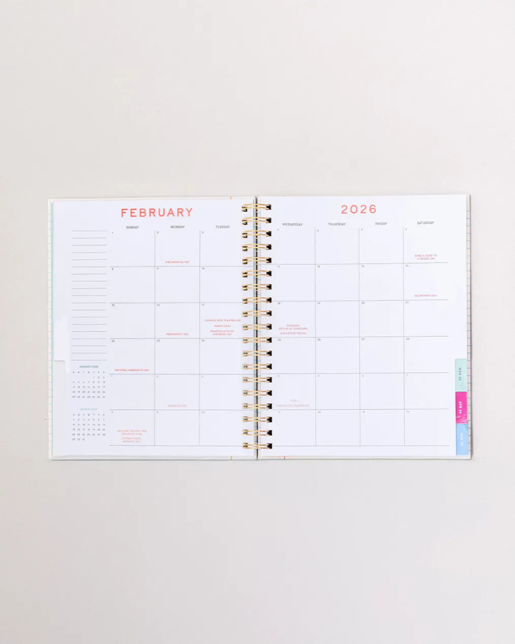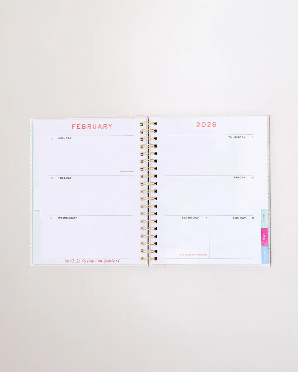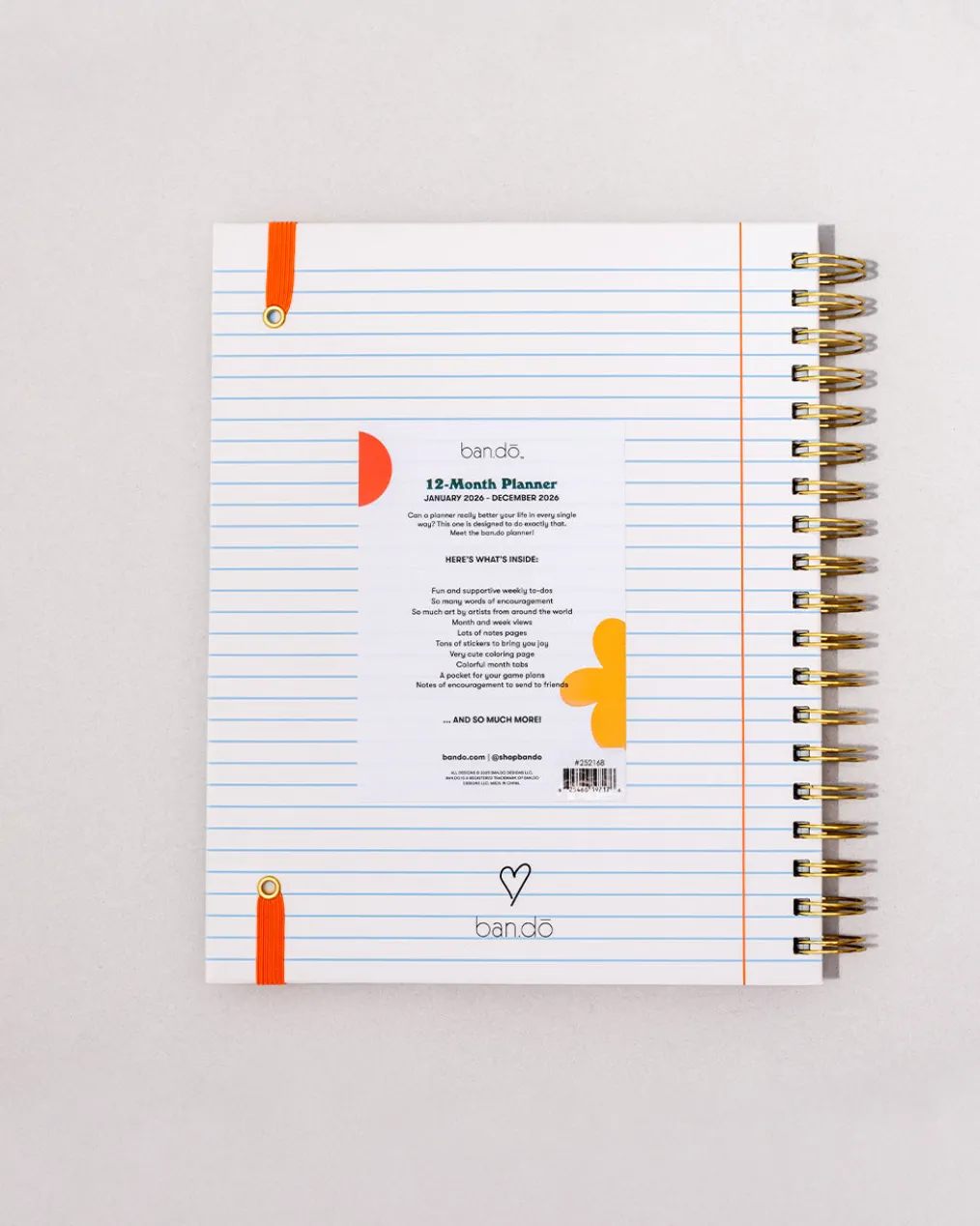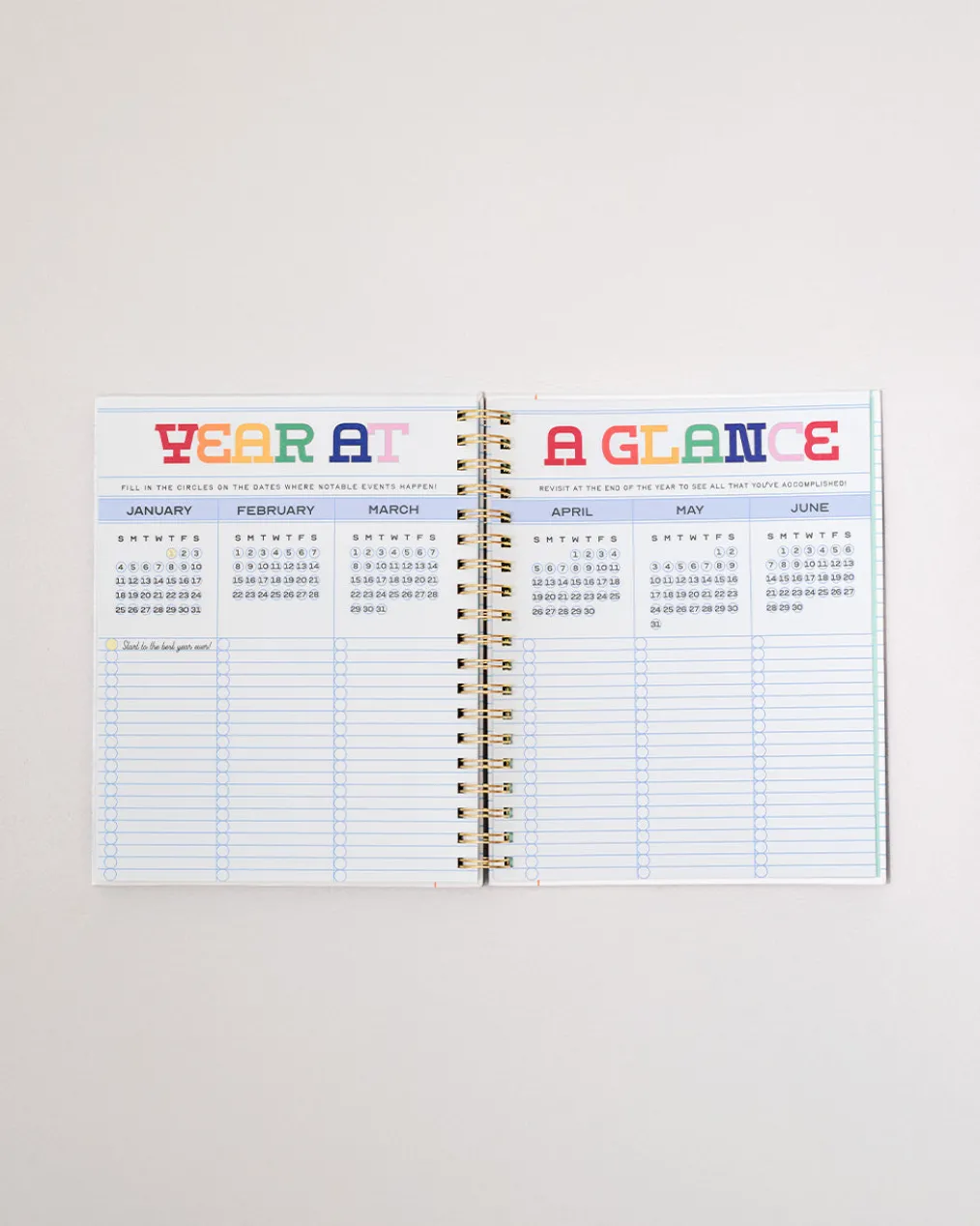 Can a planner really better your life in every single way? This one is designed to do exactly that. Meet the ban.do planner! Inside you’ll find year, month, and week views. Plus, lots and lots of amazing extras like artwork, stickers, notes pages, a coloring page, and a book tracker page! This one’s in our large size with wire-o binding.