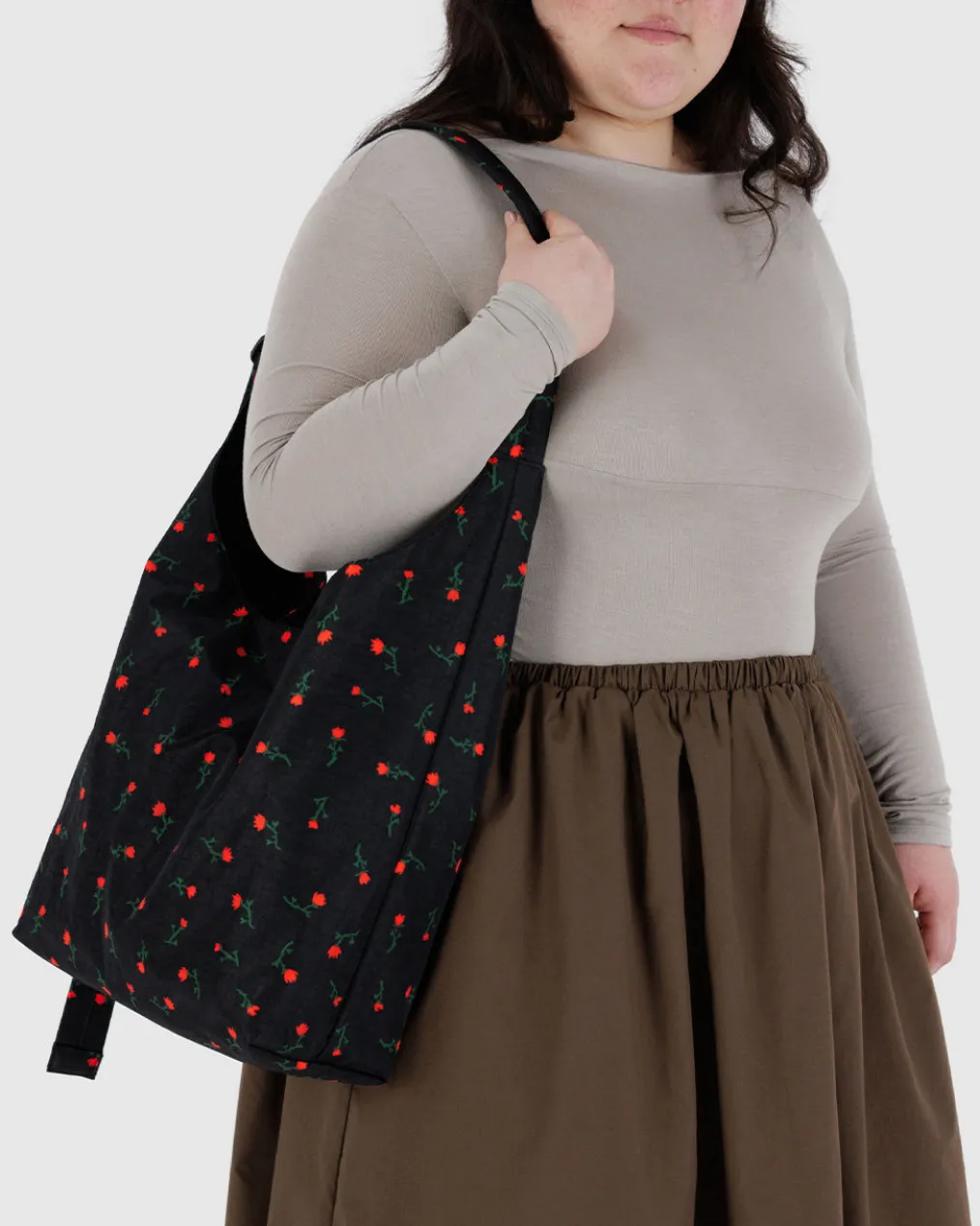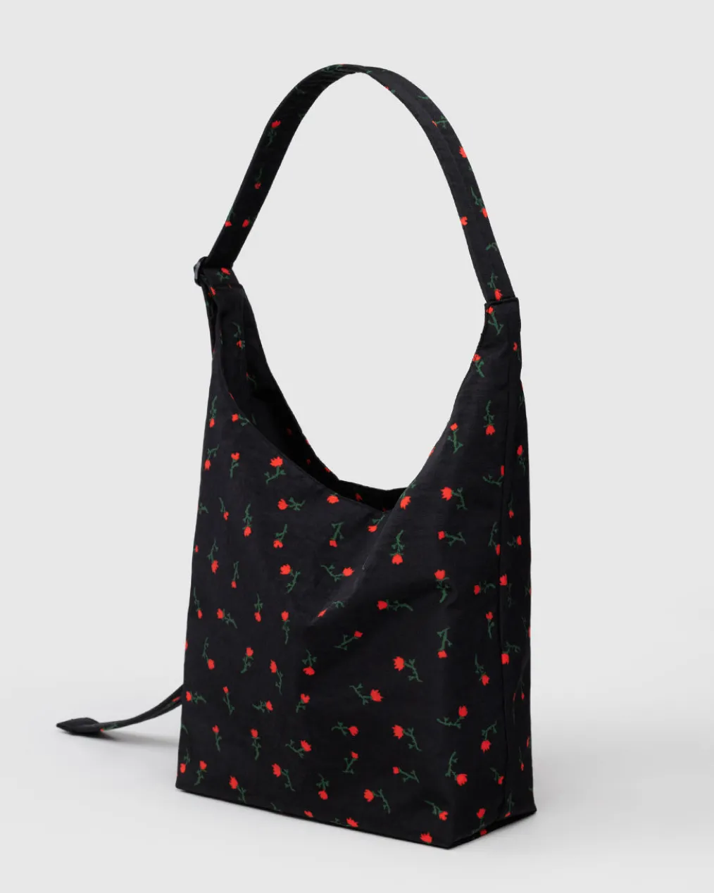 A slouchy, softly structured nylon bag with an adjustable strap. Interior zip pocket with a magnetic closure. Fits a 13/14” Puffy Laptop Sleeve.
