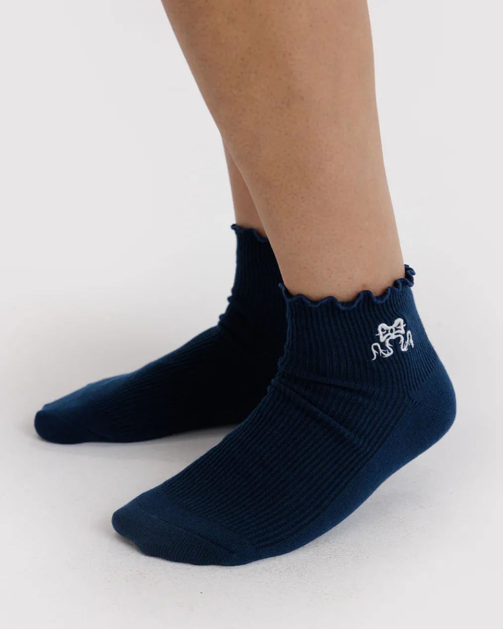 A sock with frills. Ribbed for the perfect slouch-to-structure ratio and versatile enough to wear casually or dressed up.