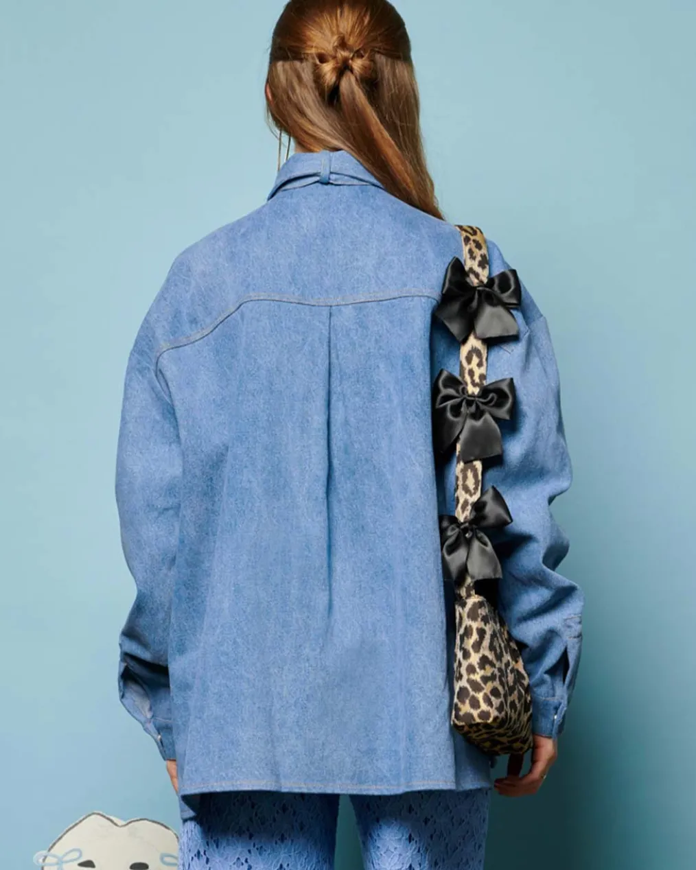Elevate your casual wardrobe with the Lincoln Denim Bow Shirt. Crafted from mid-wash denim, this boxy-fit shirt features contrasting topstitching and a handy front patch pocket. Fastened with pearl press studs and finished with a removable extra-long necktie in matching fabric, it offers a stylish twist on a classic staple.