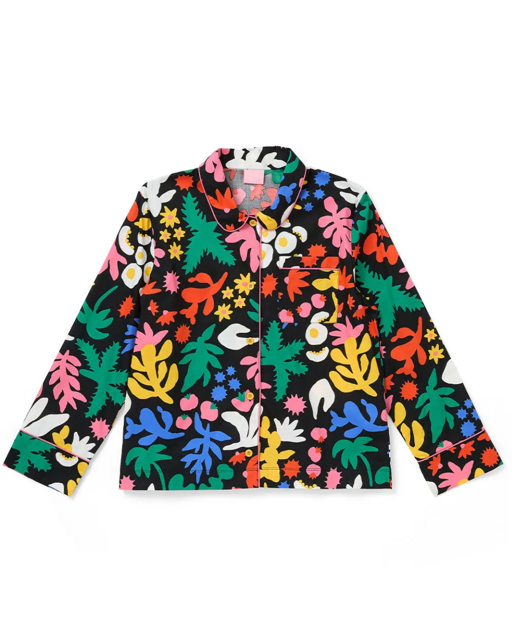 Flower power to the max. This leisure shirt has long sleeves, a classic fit, and a front patch pocket.