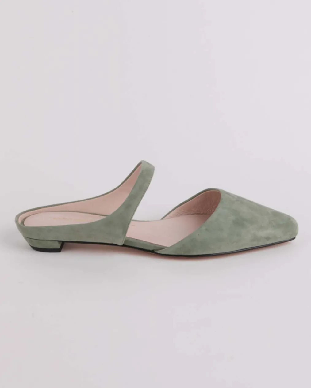 With a snipped toe and dual strap upper, this low heeled slip on is the modern answer to the flat. Perfect with skin, or chic with tights, we are bananas about this new arrival.
