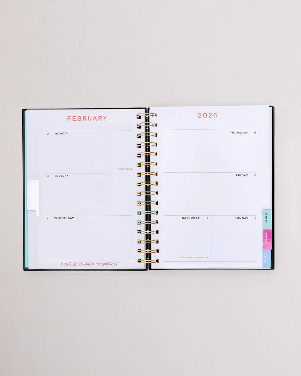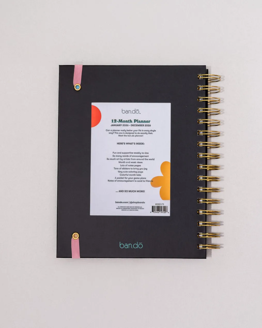Can a planner really better your life in every single way? This one is designed to do exactly that. Meet the ban.do planner! Inside you’ll find year, month, and week views. Plus, lots and lots of amazing extras like artwork, stickers, notes pages, a coloring page, and a book tracker page! This one’s in our medium size with wire-o binding.