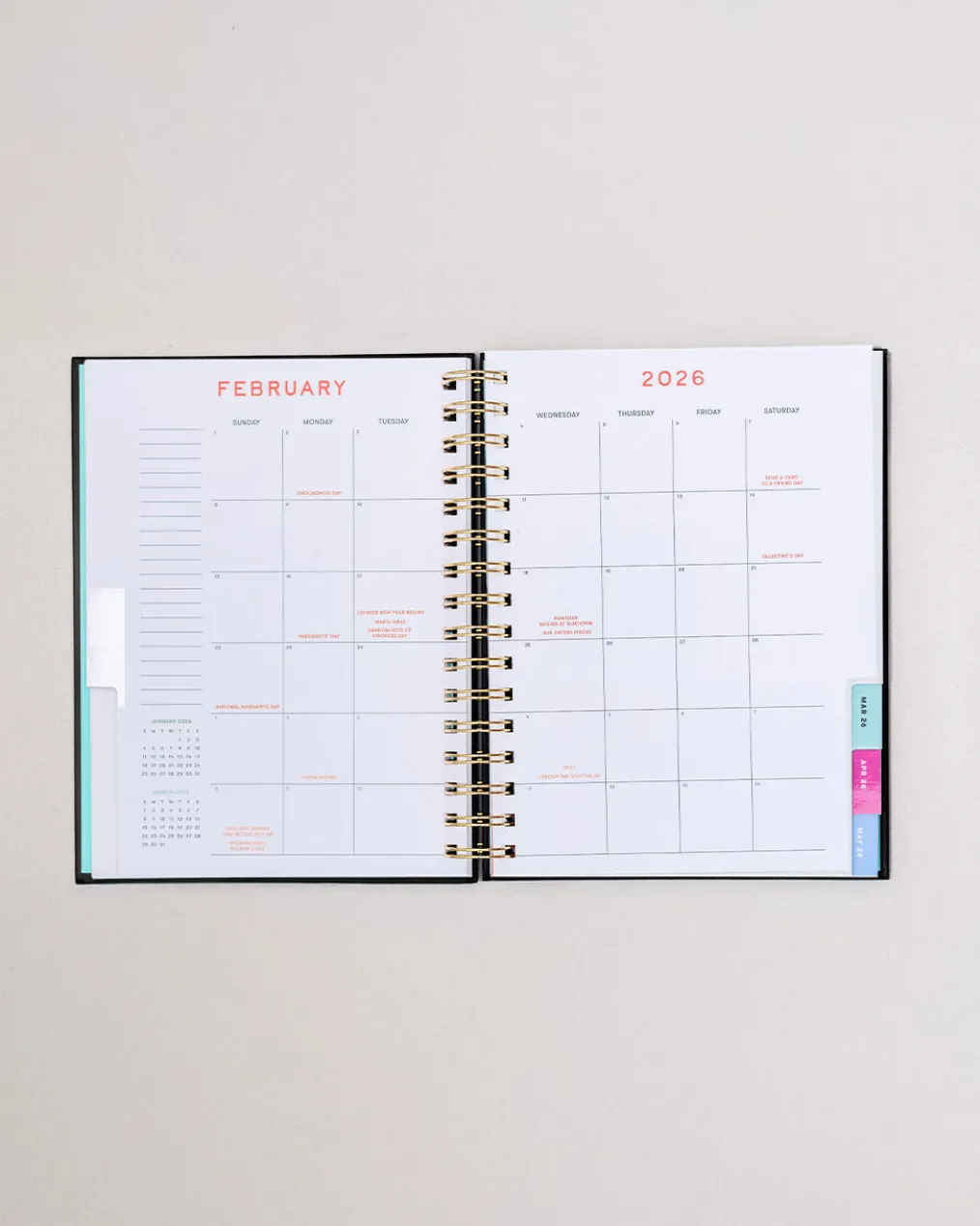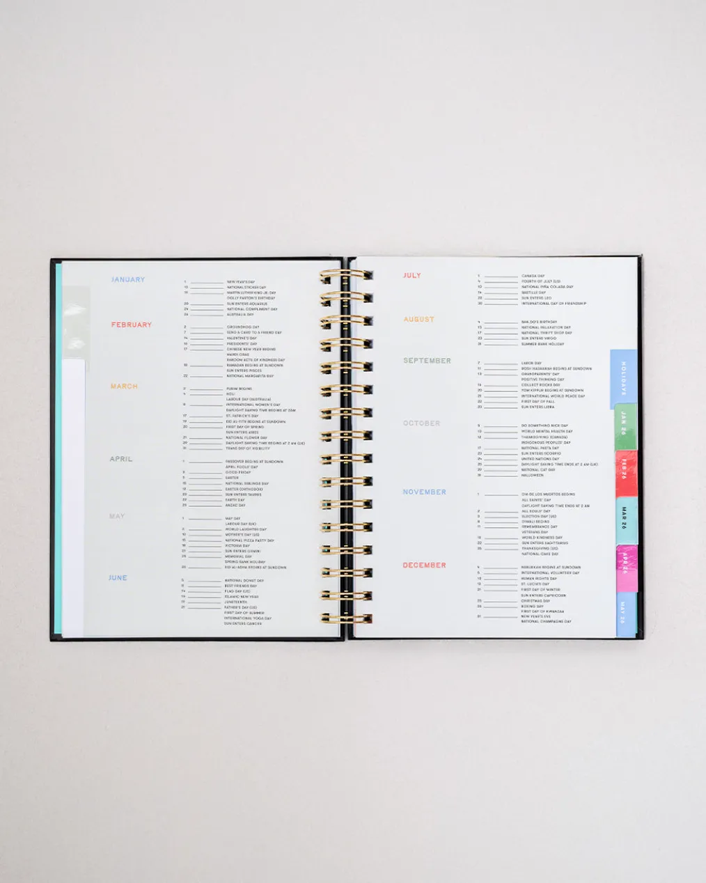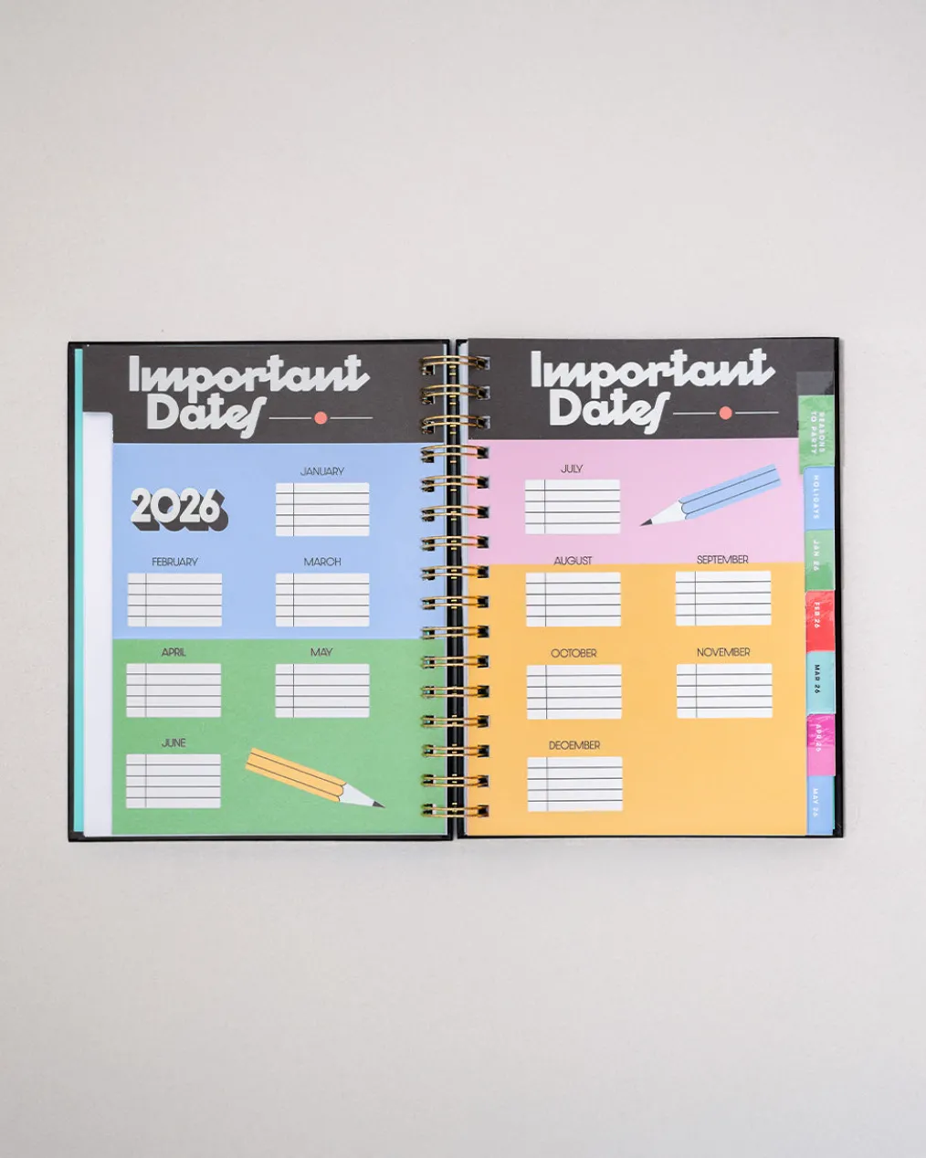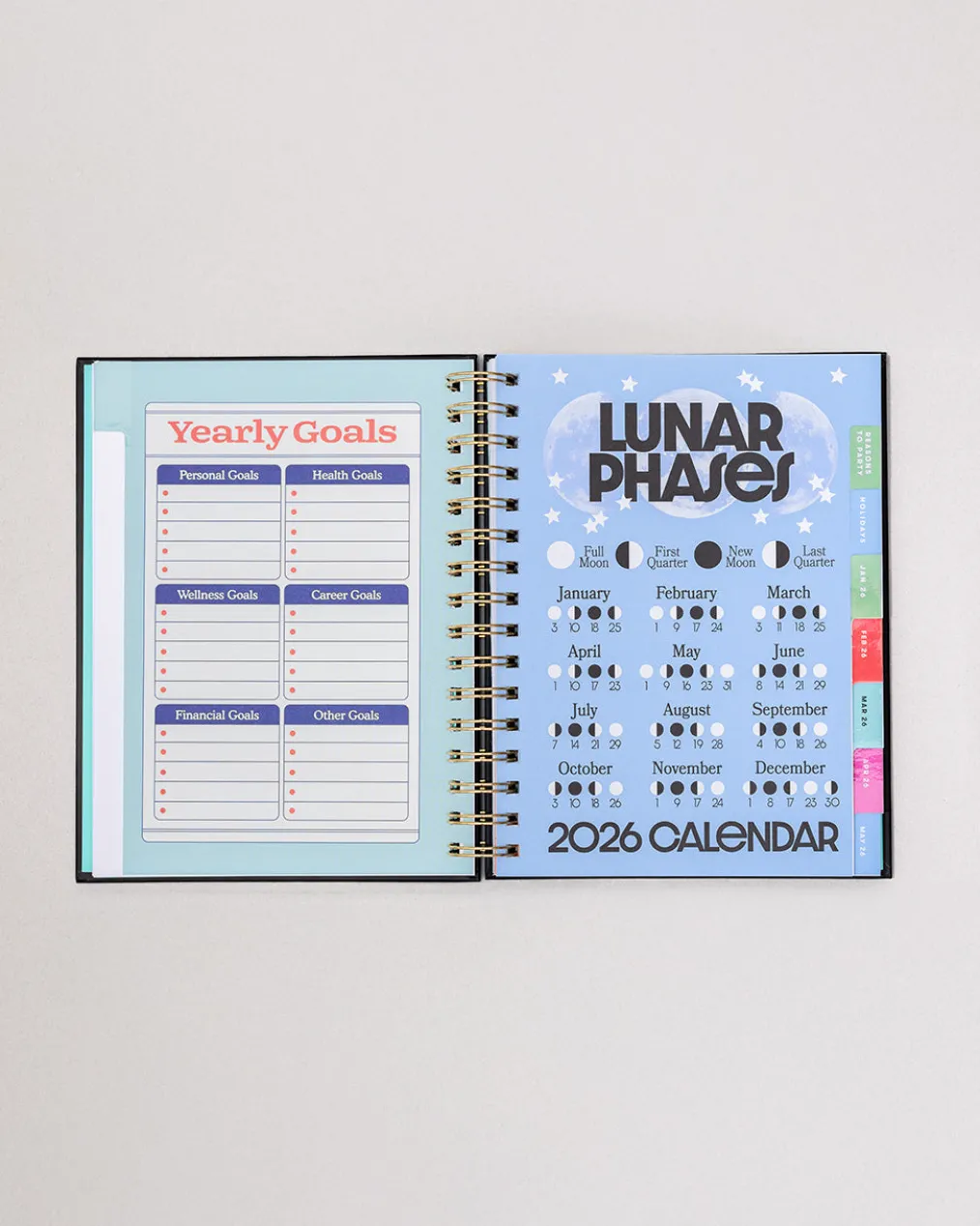 Can a planner really better your life in every single way? This one is designed to do exactly that. Meet the ban.do planner! Inside you’ll find year, month, and week views. Plus, lots and lots of amazing extras like artwork, stickers, notes pages, a coloring page, and a book tracker page! This one’s in our medium size with wire-o binding.