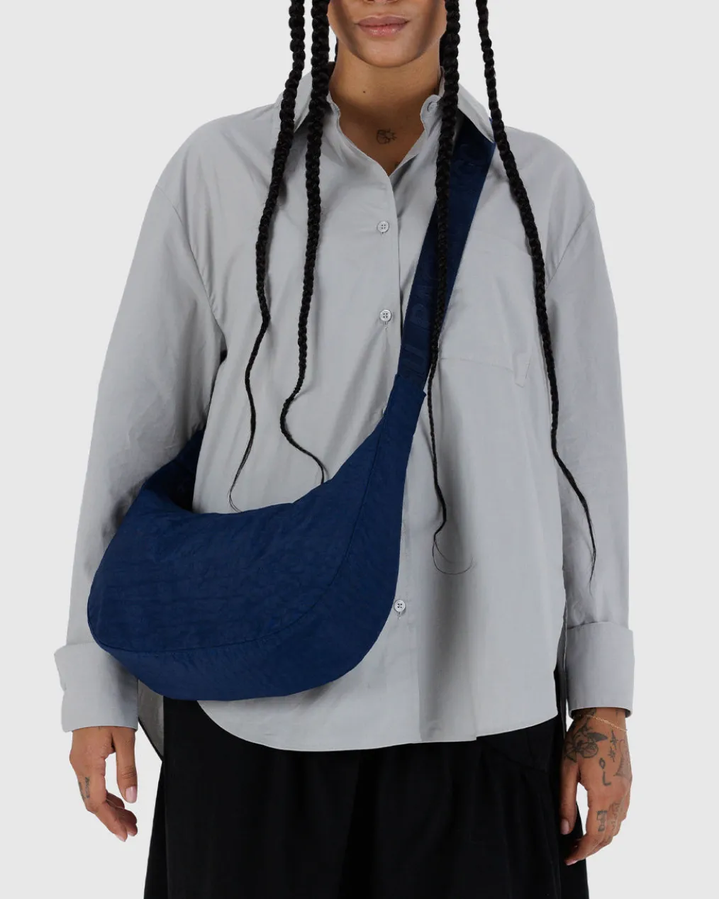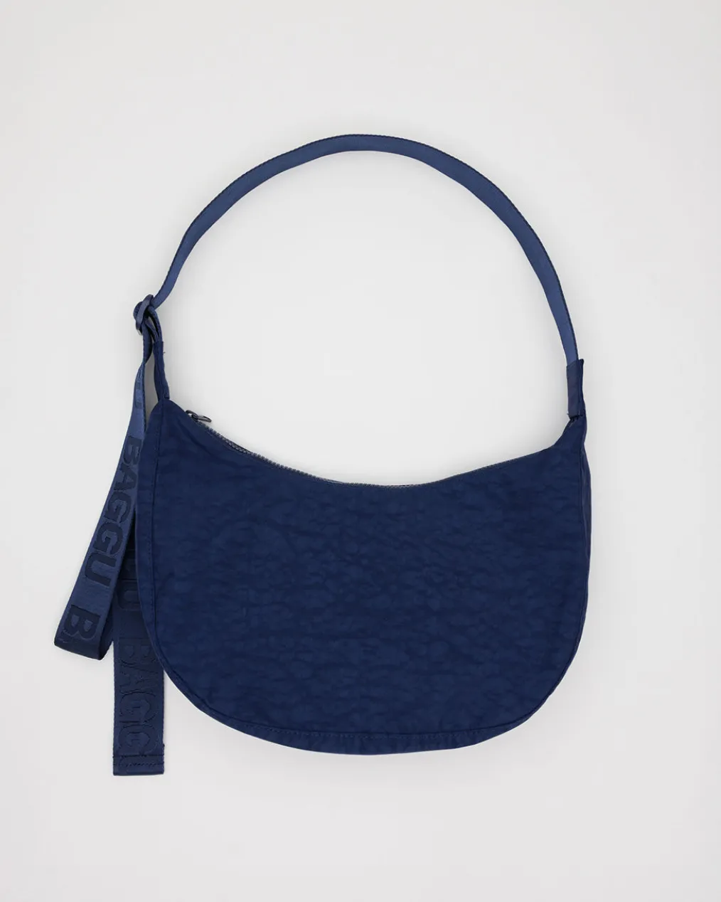 Lots of neat things are crescent-shaped: bananas, cashews, croissants, and now this Baggu bag. It features two interior zip pockets, an adjustable strap, and machine-washable fabric.