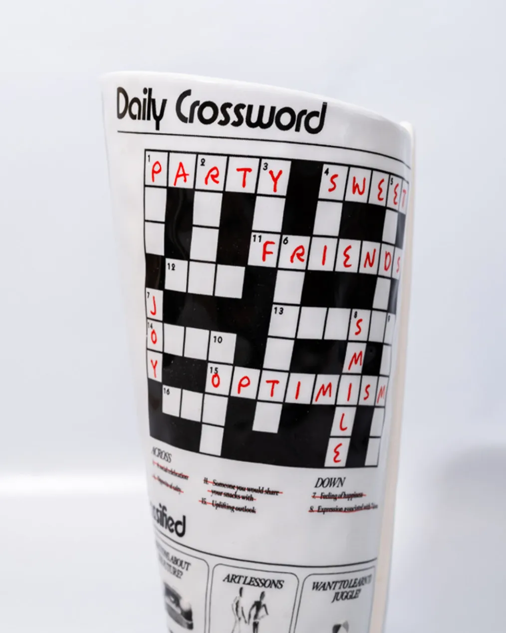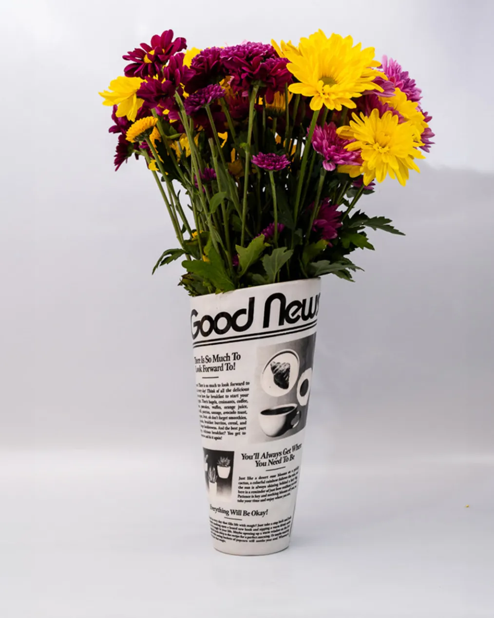 Extra! Extra! Read all about this vase: It’s ceramic and features a newspaper design