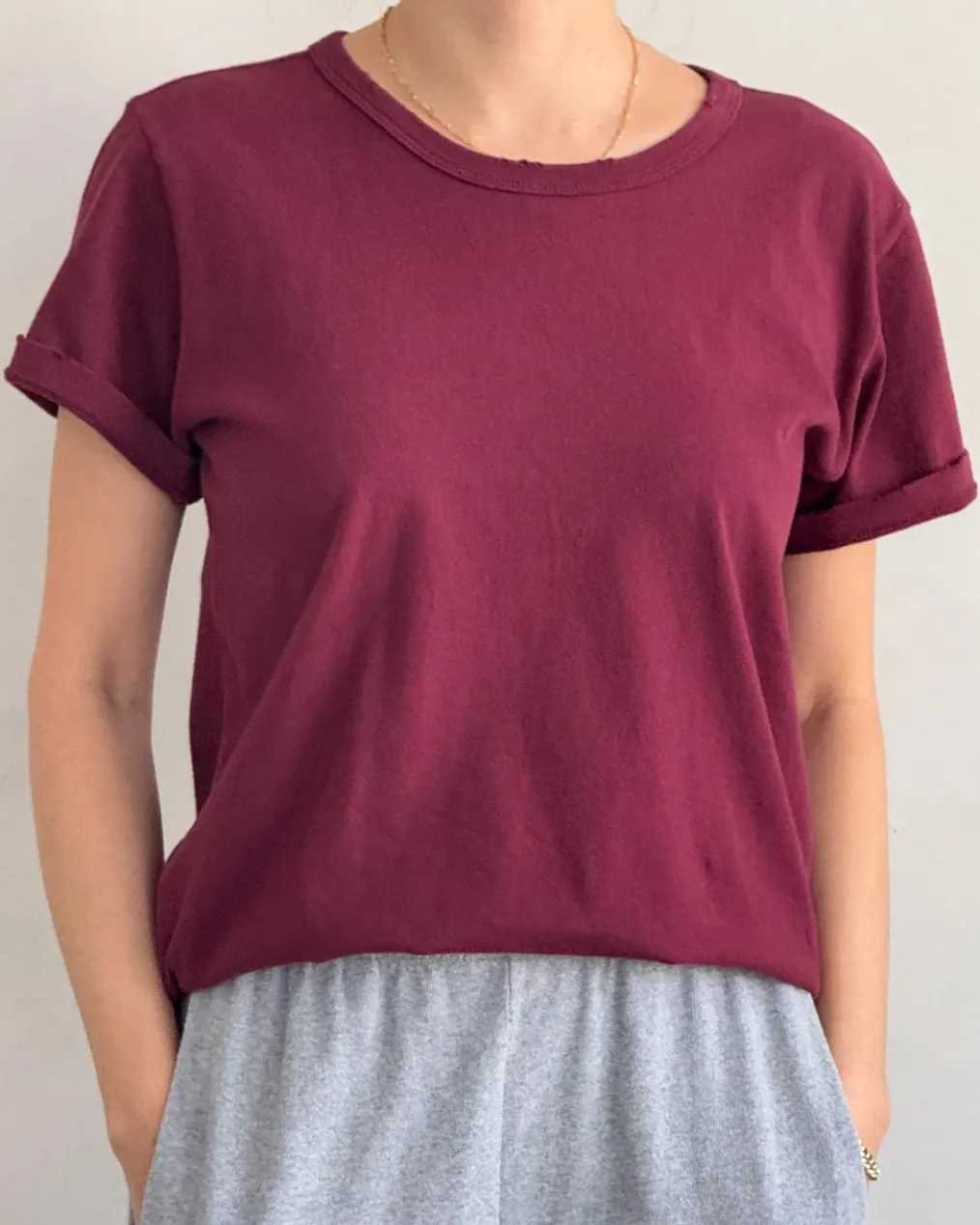 Organic Cotton Vintage Boy Tee is Le Bon Shoppe’s take on the cult classic tee, almost like the one you love to steal from your boyfriend’s closet, but even better. She has a classic crew neck that shows just the right amount of collarbone, is gently distressed for that gorgeous vintage look but without the smell, and has the most flattering relaxed boxy fit with a straight hem. Made from 100% organic cotton in Los Angeles, this tee has it all.