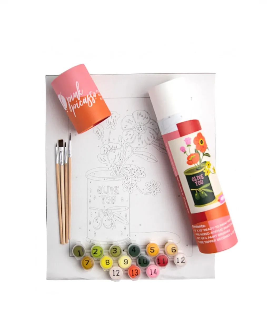 Part of the Mid Century Modern collection, this kit was made for feel-good painting sessions—short, sweet, and full of charm. Whether you gift it to a loved one or keep it for yourself, Olive You is sure to make you smile.