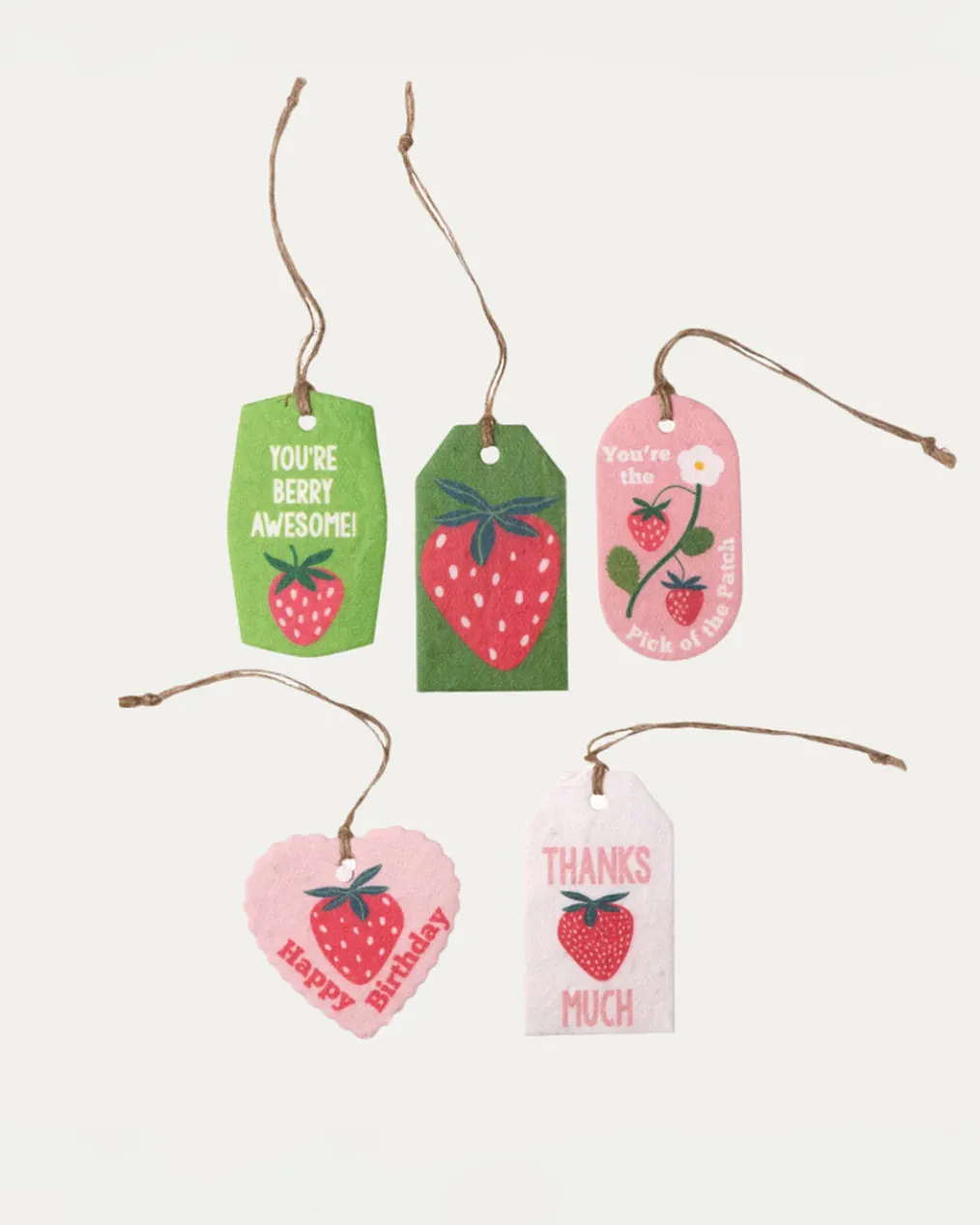 Add a charming, eco-friendly touch to your gifts with these plantable seed gift tags. Featuring six designs inspired by vintage seed envelopes, each set includes five unique gift tags themed to the plant on the cover. Gift a tag to a friend, and they can plant it to grow tomatoes, strawberries, beets, carrots, daisies, or lavender. Perfect for gardeners and nature lovers!