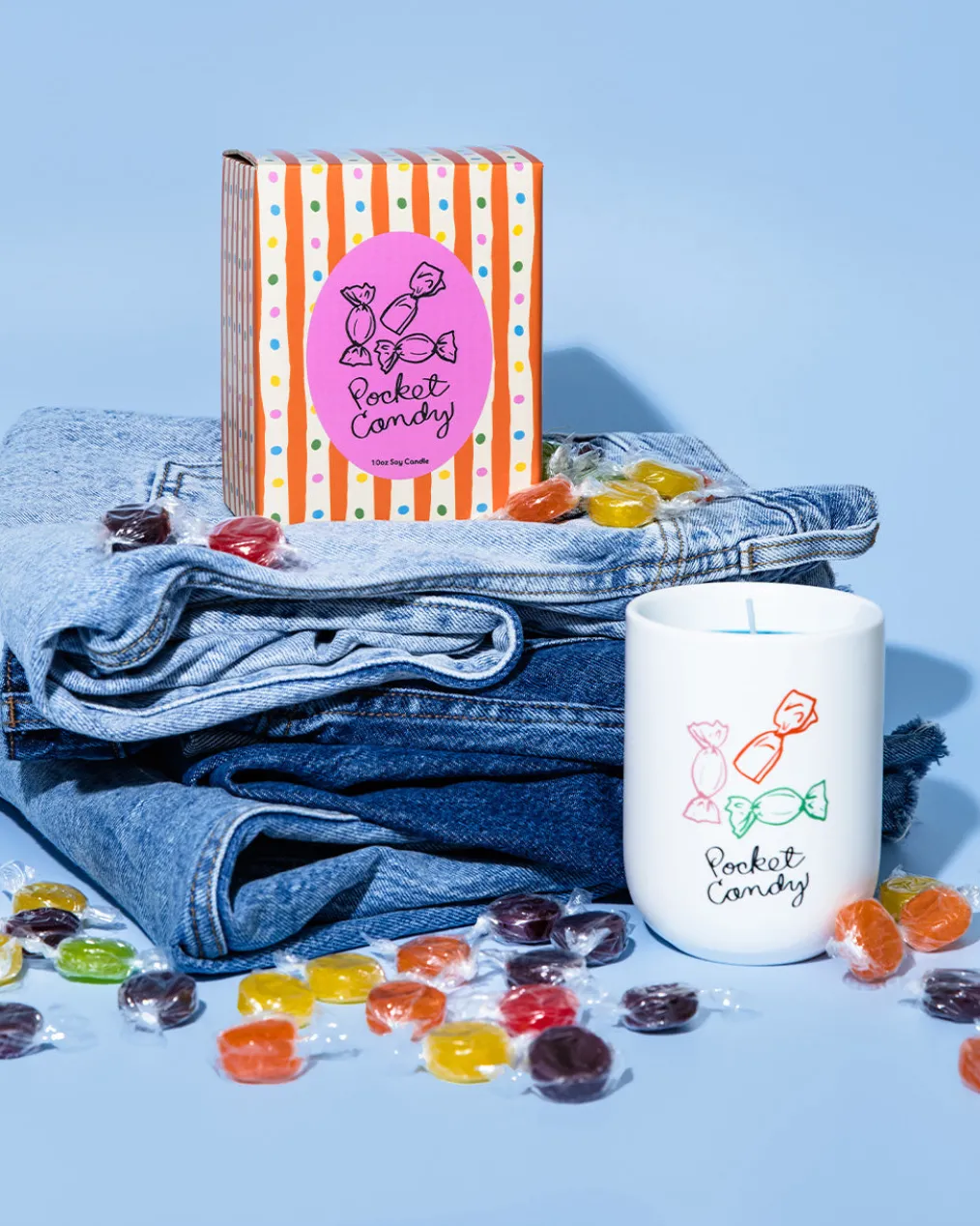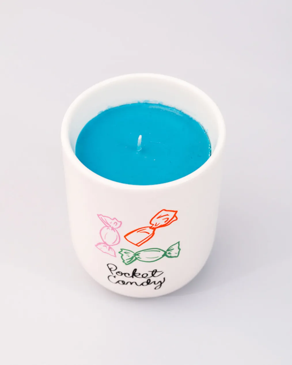 Scents that just make sense. This candle features a ceramic vessel, colored wax, and a sweet fruity scent—reminiscent of a handful of hard candy.