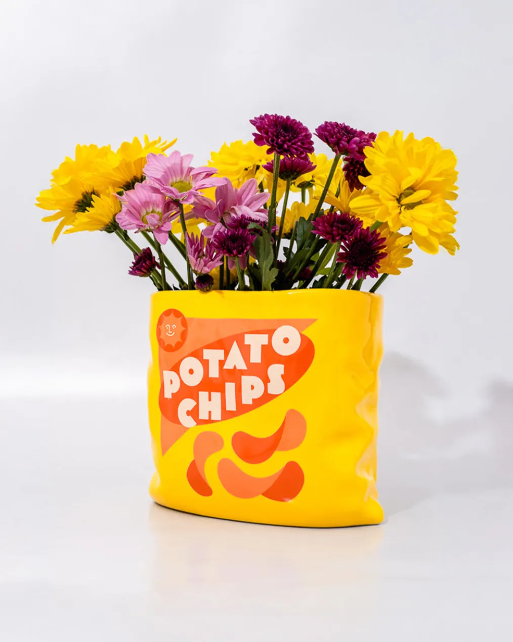 Ah, yes, we’ll just help ourselves to some potato chips — wait a second! That’s a vase! And it’s going to look so good on your kitchen table with a little bouquet inside.