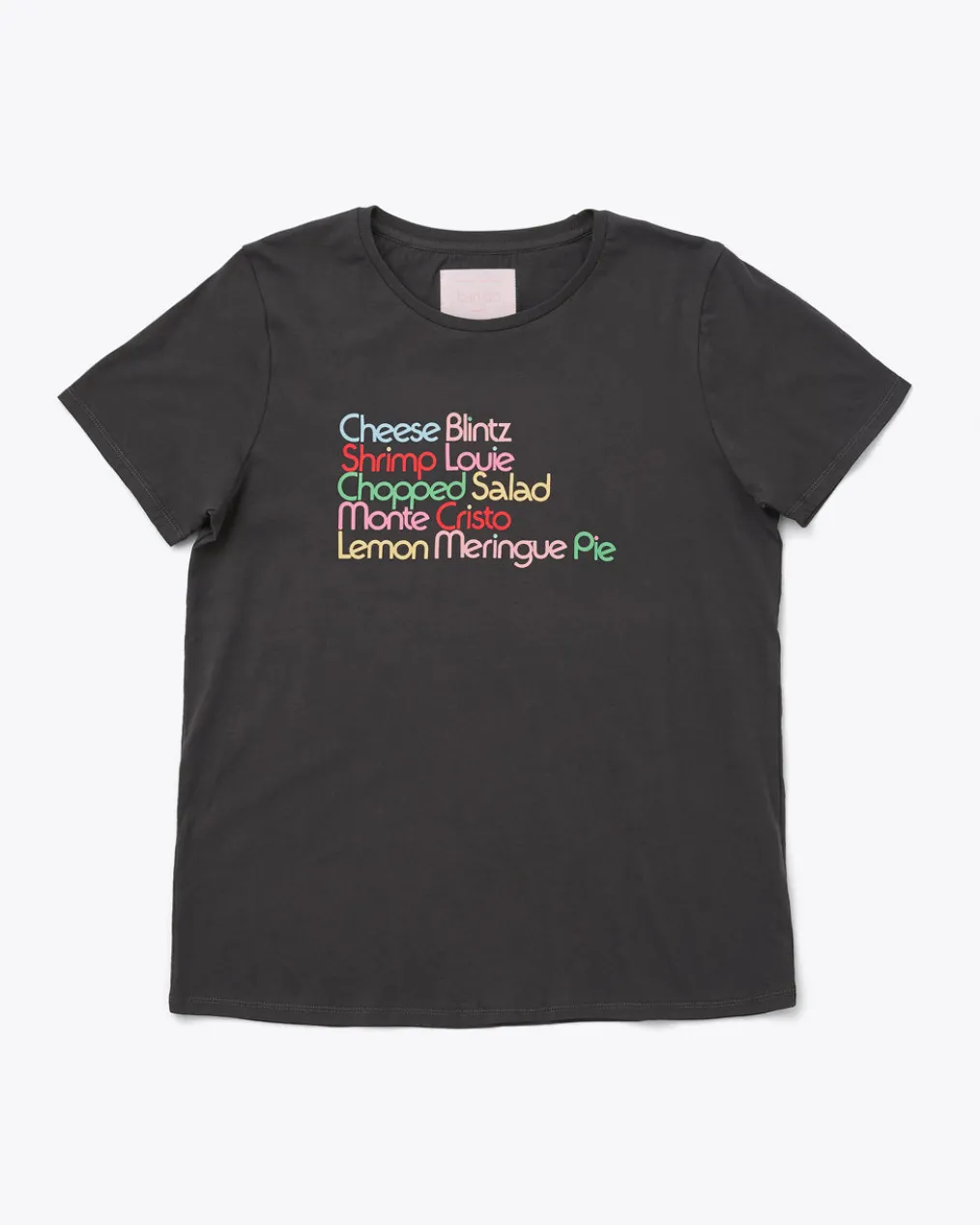 Manifest your favorite dishes into existence with this super soft t-shirt. It has short sleeves, a crewneck, and a multi-colored design.