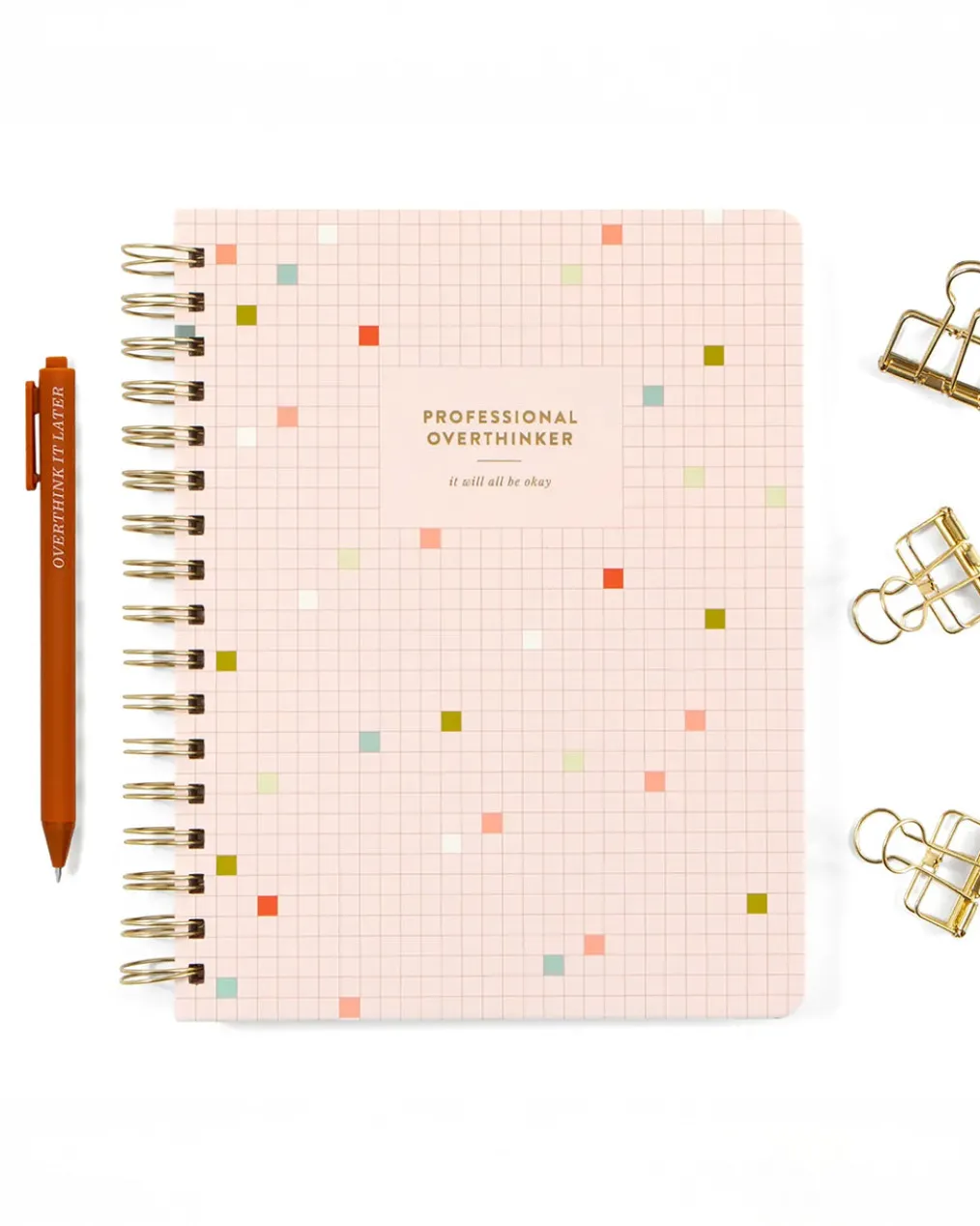 Stay organized and inspired with the Professional Overthinker Spiral Notebook! Featuring lined pages for all your thoughts, lists, and brainstorms, this 7” x 9” wire-bound notebook is perfect for journaling, note-taking, or planning your next big idea. The playful cover design makes it a great desk companion or a fun gift for students, writers, teachers, or anyone who loves to jot things down. Whether you’re tackling to-do lists or letting your creativity flow, this stylish and functional notebook is here to keep up with your brilliant (and overthought) ideas!