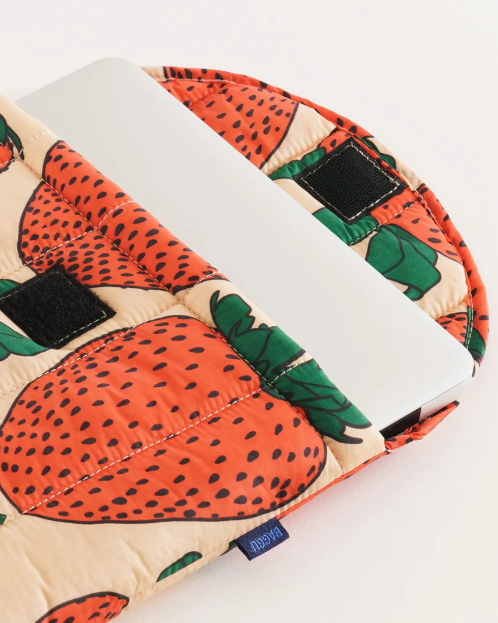 It’s about time your laptop had its very own Baggu bag. This sleeve is 13″ long, lightly padded, and has a Velcro closure.