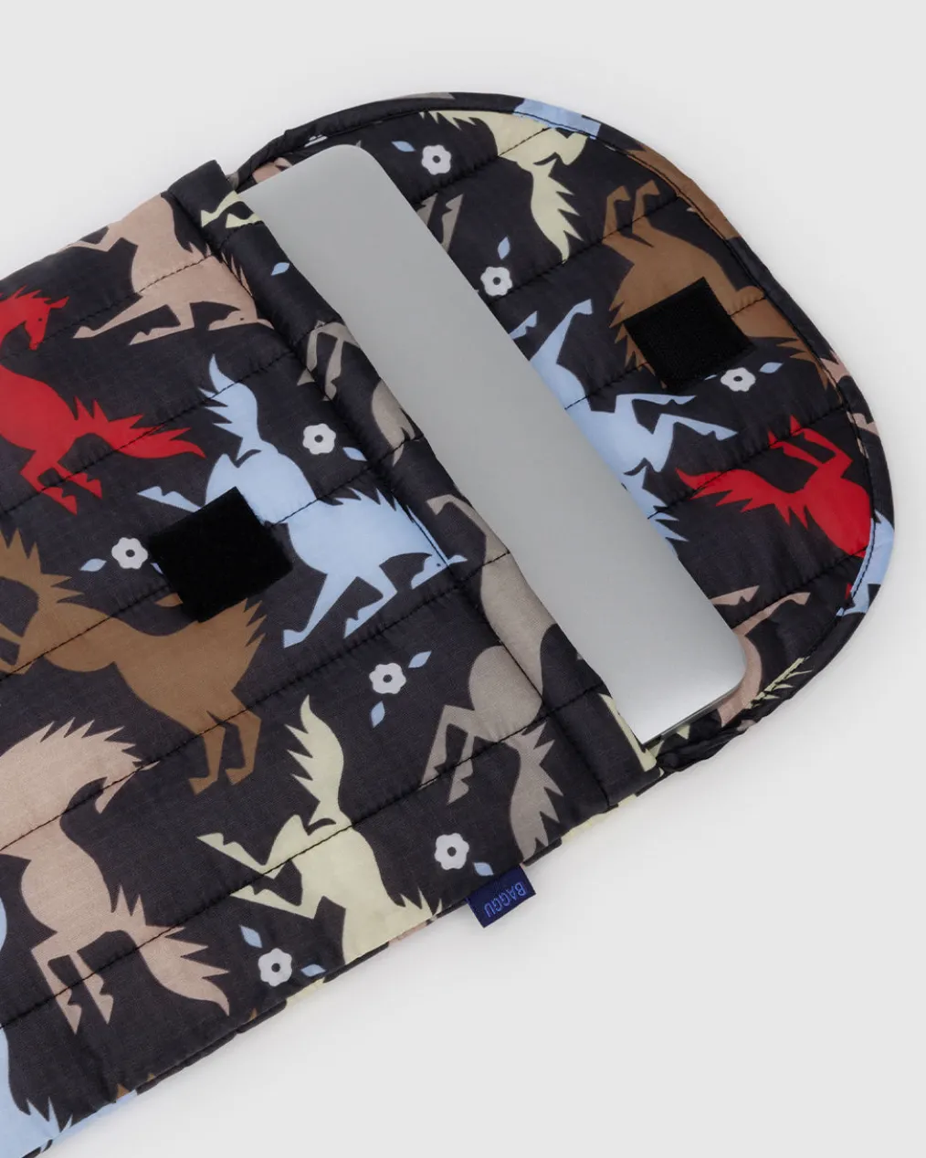 It’s about time your laptop had its very own Baggu bag. This sleeve is 16 in. long, lightly padded, and has a Velcro closure.